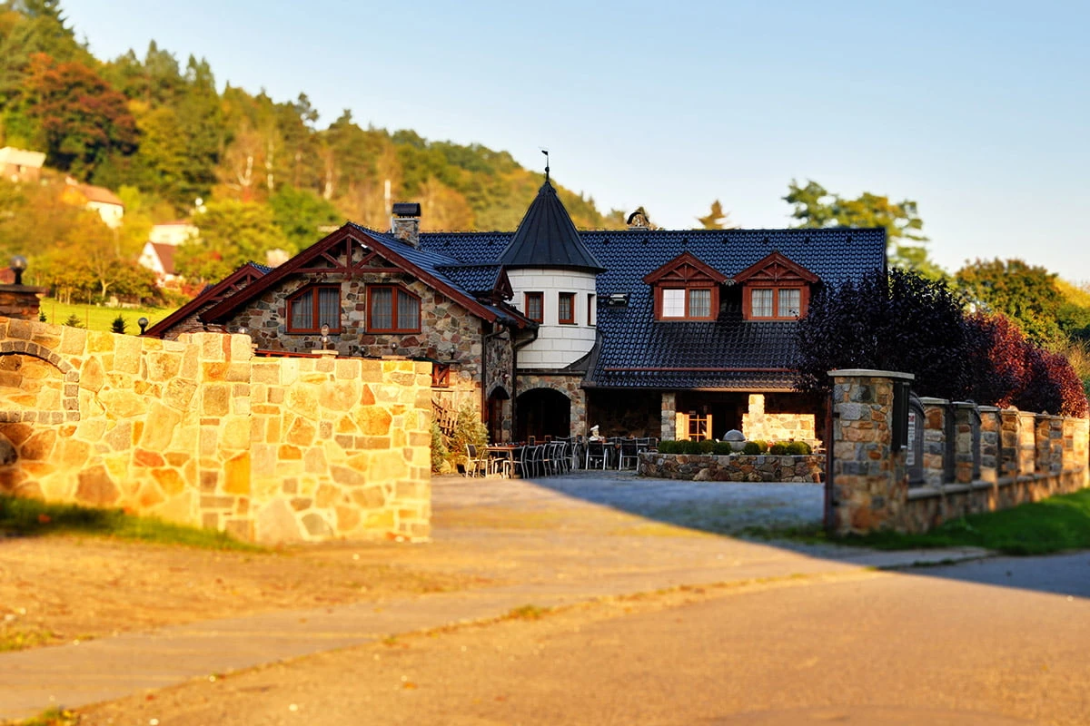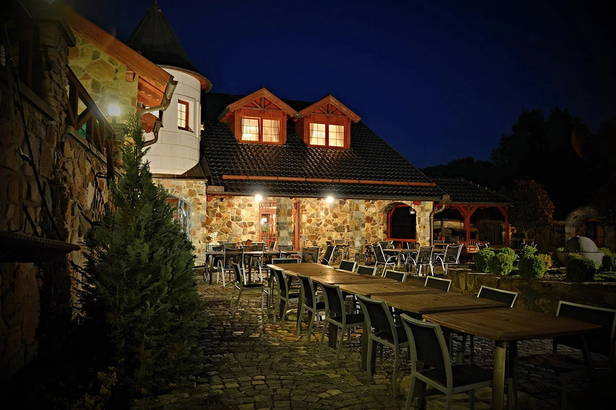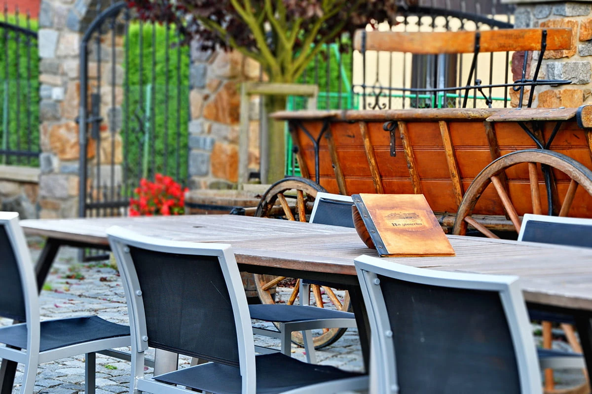 Naše stylová zámecká vinárna je přístupná z nádvoří a navazuje na letní krytou terasu. Je vybavena dřevěným nábytkem s polstrovanými židlemi pro 20 osob.