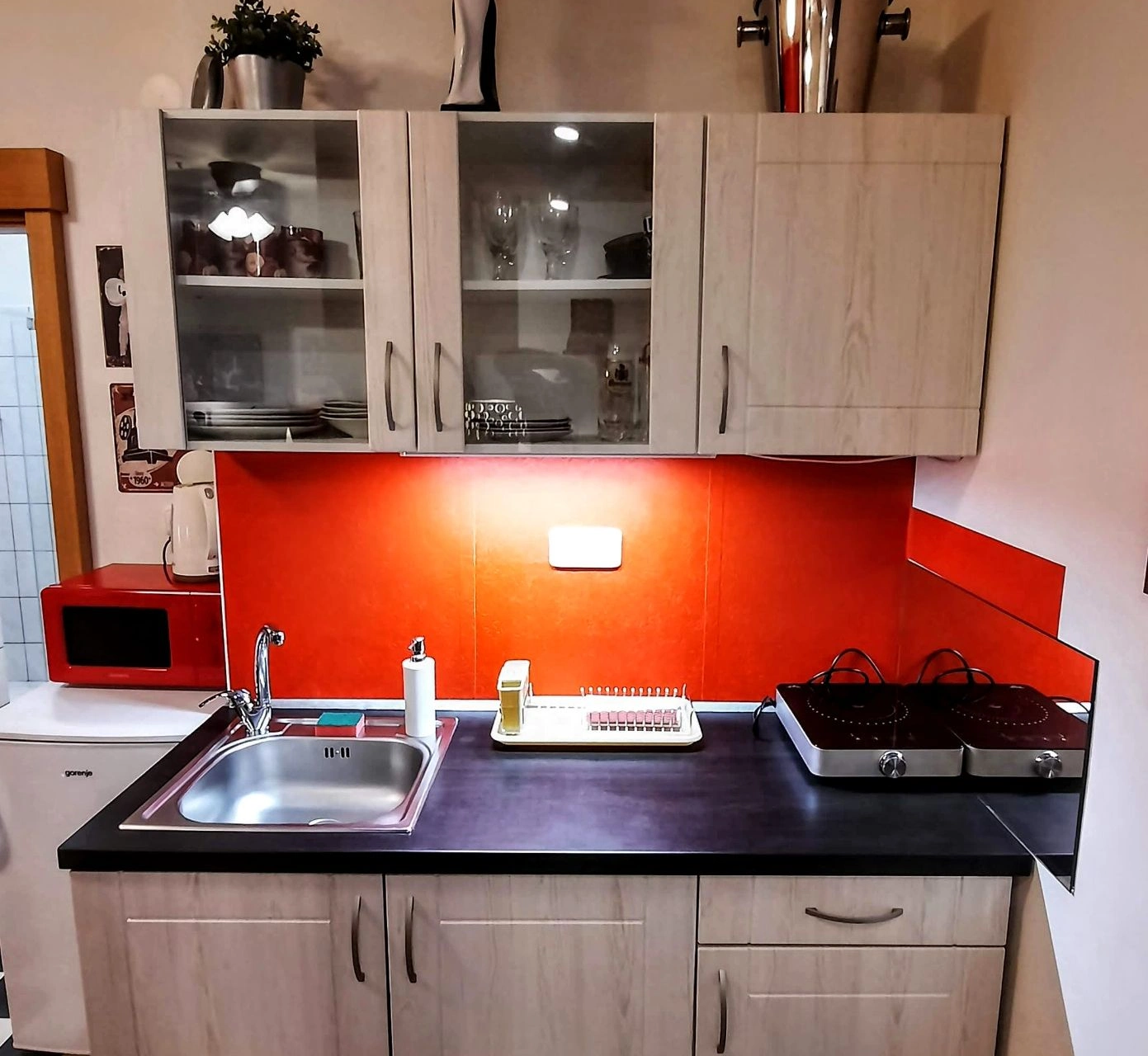 - Kuchyňský kout s lednicí a mikrovlnnou troubou