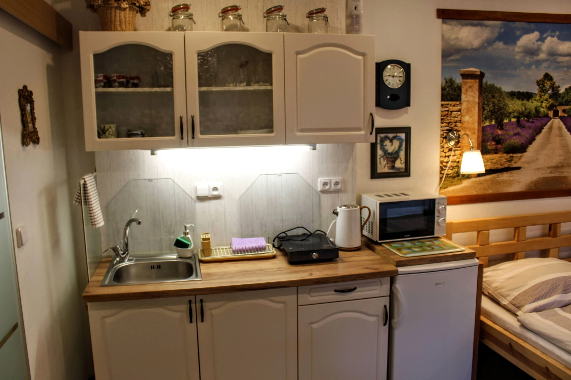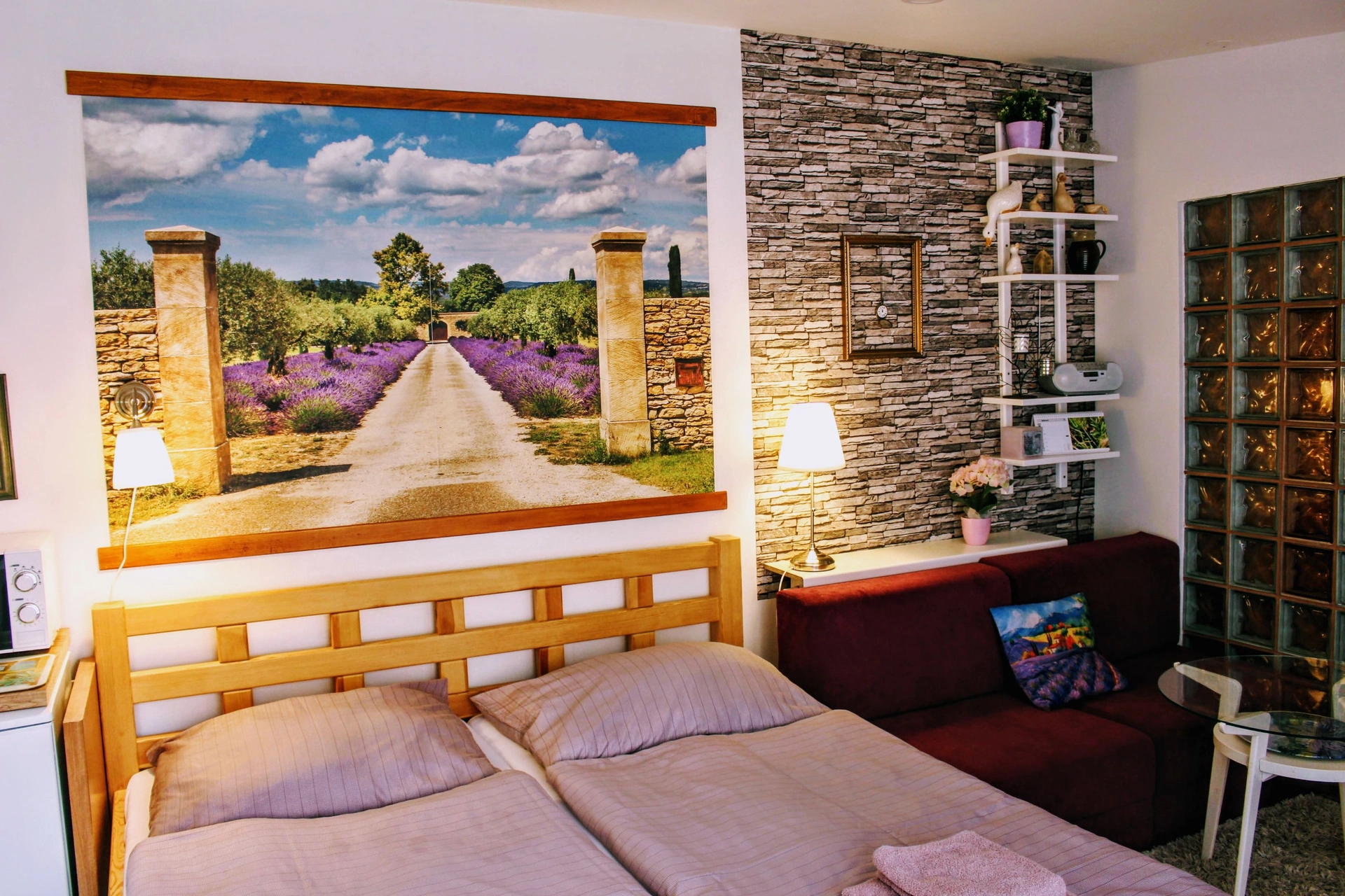 - Apartmán ROMANTIK – přízemí, 16 m², částečně bezbariérový, manželská postel, kuchyňský kout, TV, radio, WiFi, sprcha a WC.