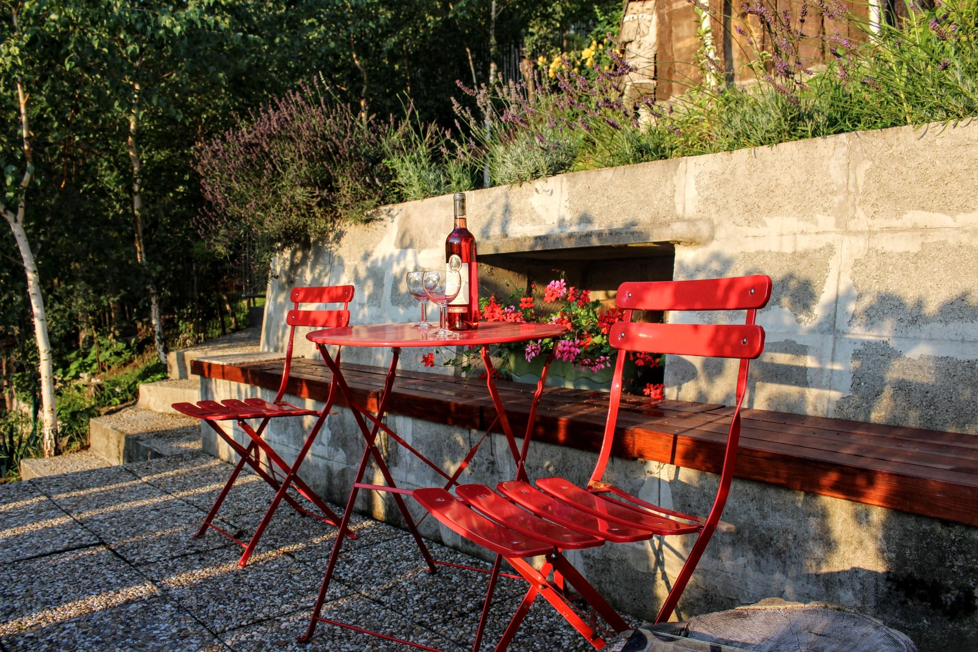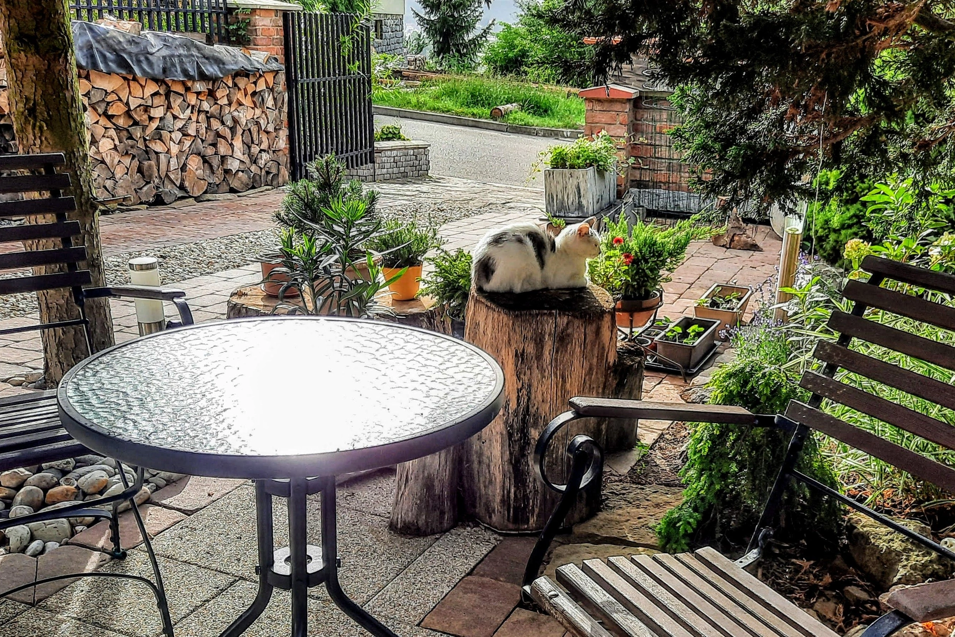 V domě jsou tři jednopokojová apartmá, každé se samostatným vchodem, vlastním sociálním zařízením a dobře vybavenou kuchyňkou. Všechna apartmá mají výstup na zahradu a terasu a možnost využití venkovního atria: