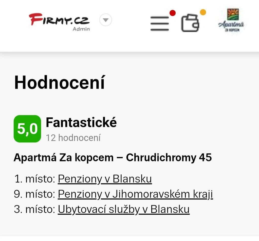 Apartmánový dům Za kopcem se nachází v klidné obci Chrudichromy, 2 km od centra města Boskovice. Objekt nabízí ubytování pro dospělé hosty, vhodné pro páry, služební cestující i turisty. Zvířata nejsou povolena.