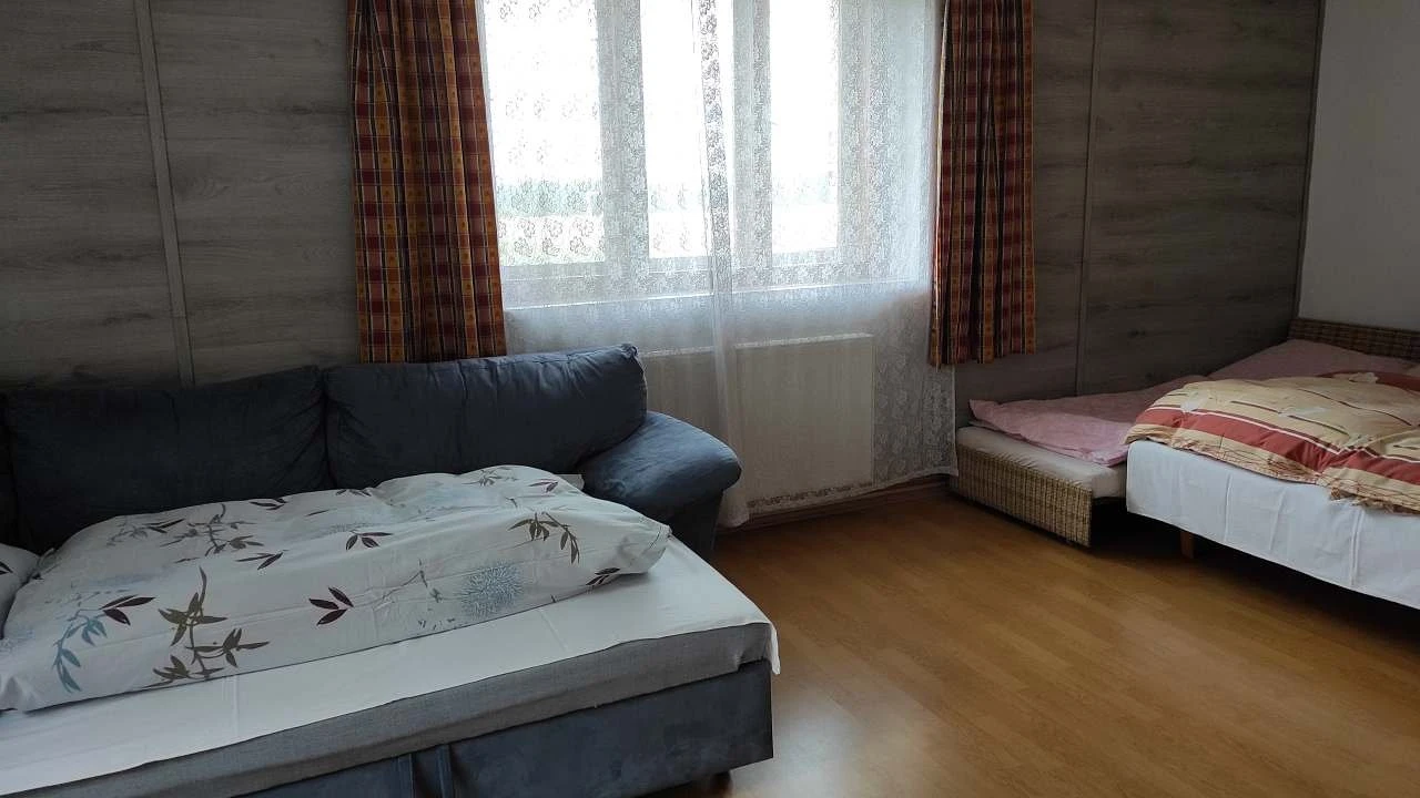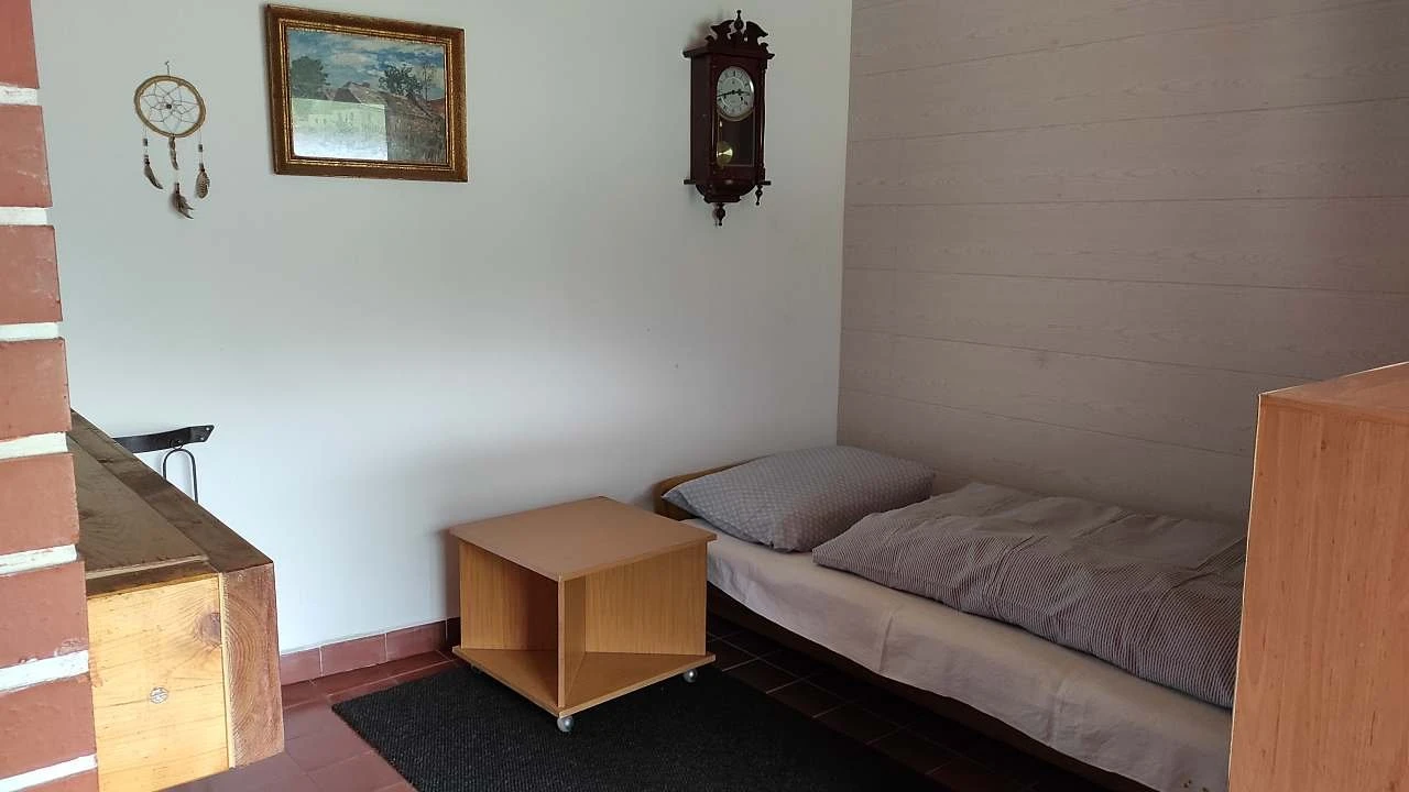 Jedná se o samostatnou bytovou jednotku se vlastním vchodem, která tvoří polovinu chalupy. Kapacita je až 6 lůžek + 2 přistýlky ve 2 ložnicích, což je vhodné pro rodinu nebo menší skupinu. K dispozici je vnitřní krb, bezbariérový přístup a možnost pobytu se zvířaty. Parkování je zajištěno přímo v areálu pro až 2 auta.