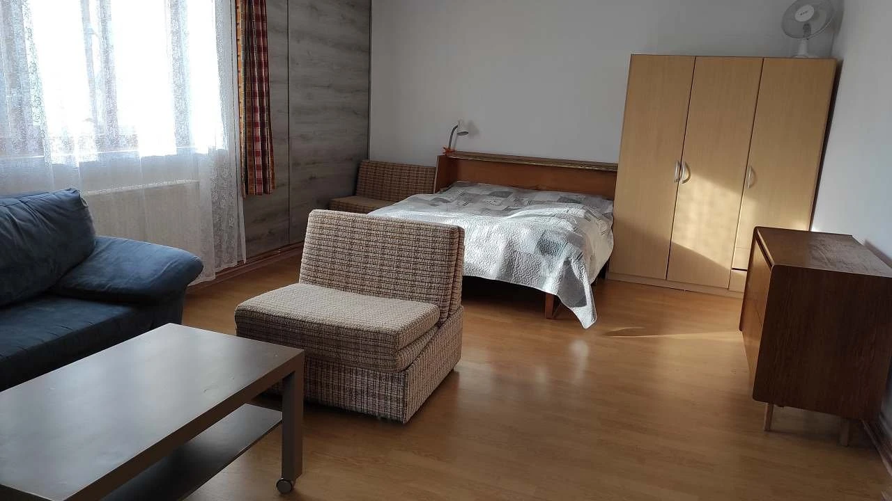 - 2 pokoje (ložnice + obývací pokoj)