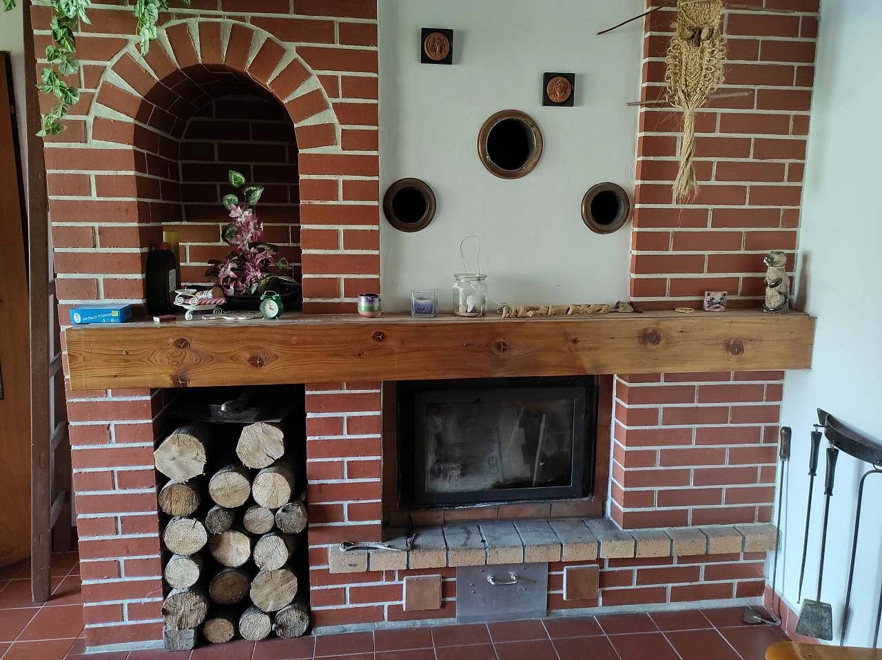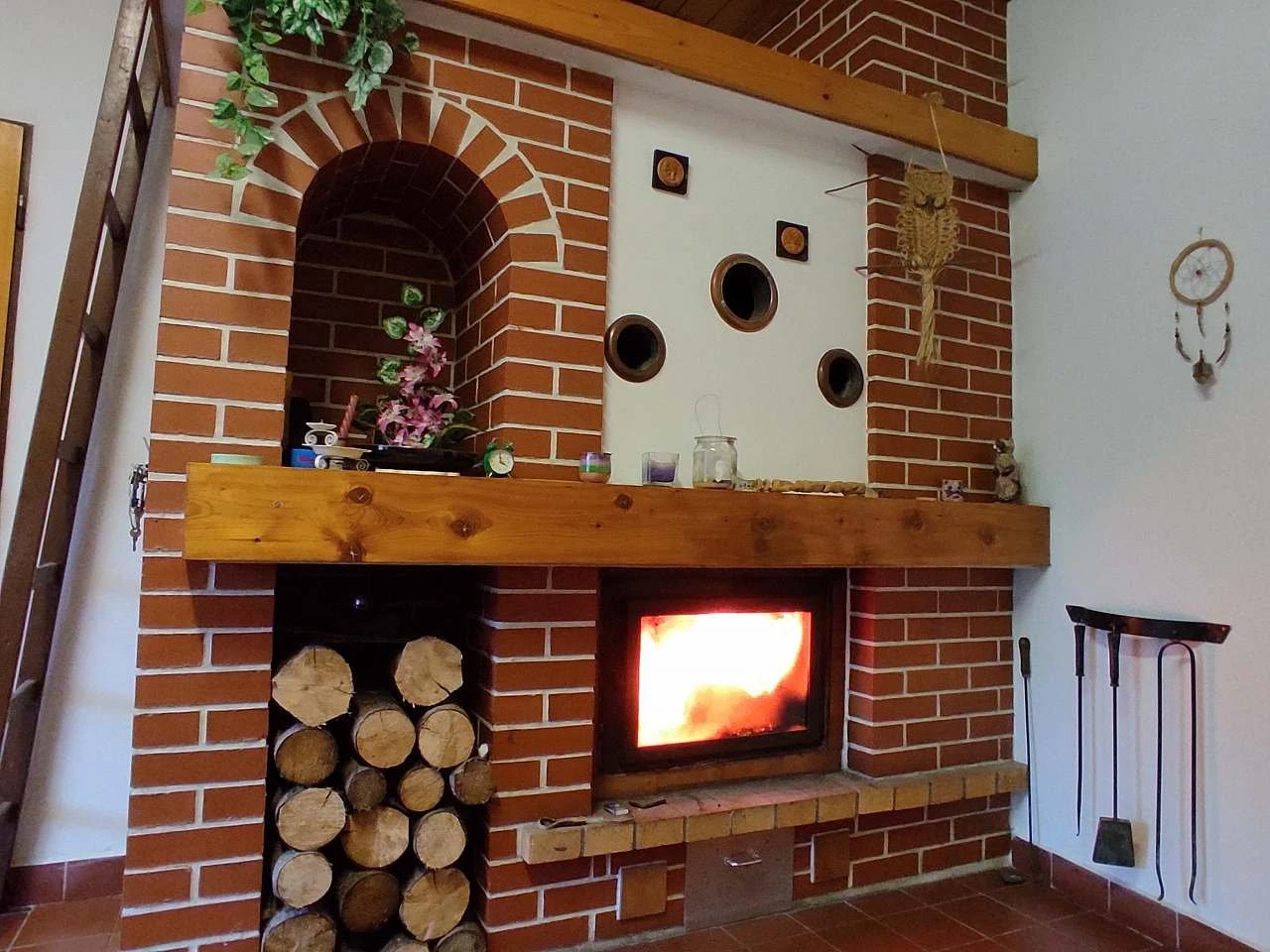 - Kamna na dřevo s teplovodním výměníkem (napojení na radiátory)