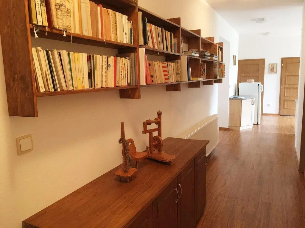 - Společenská místnost s pohodlným gaučem a jídelním sezením