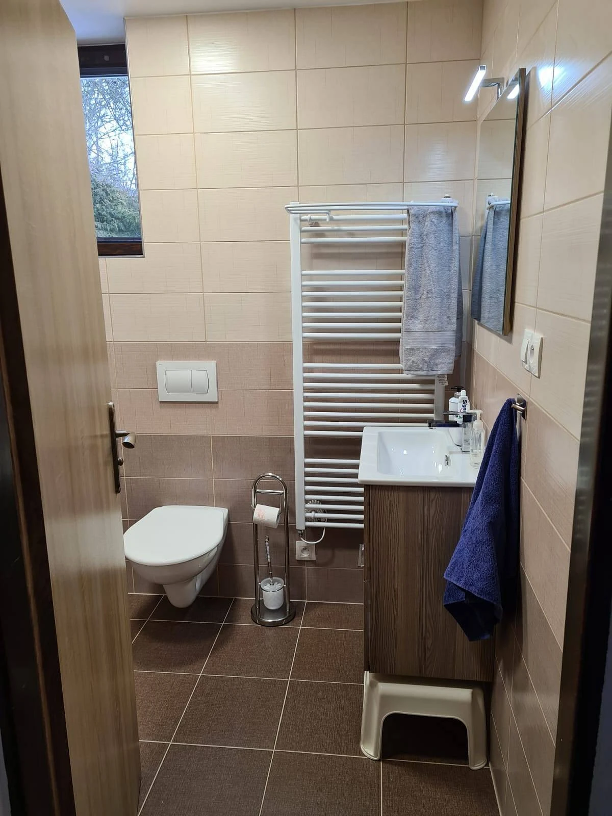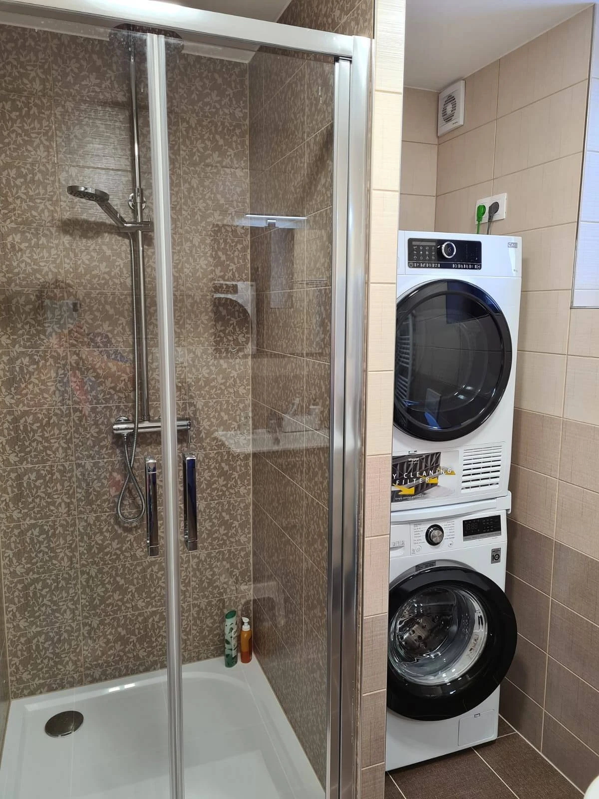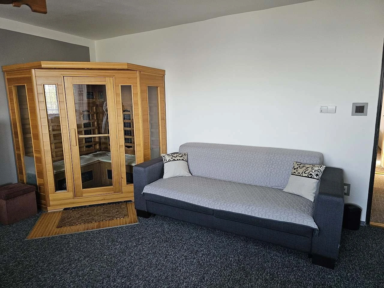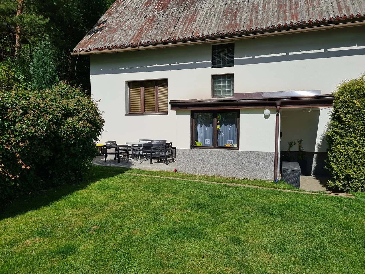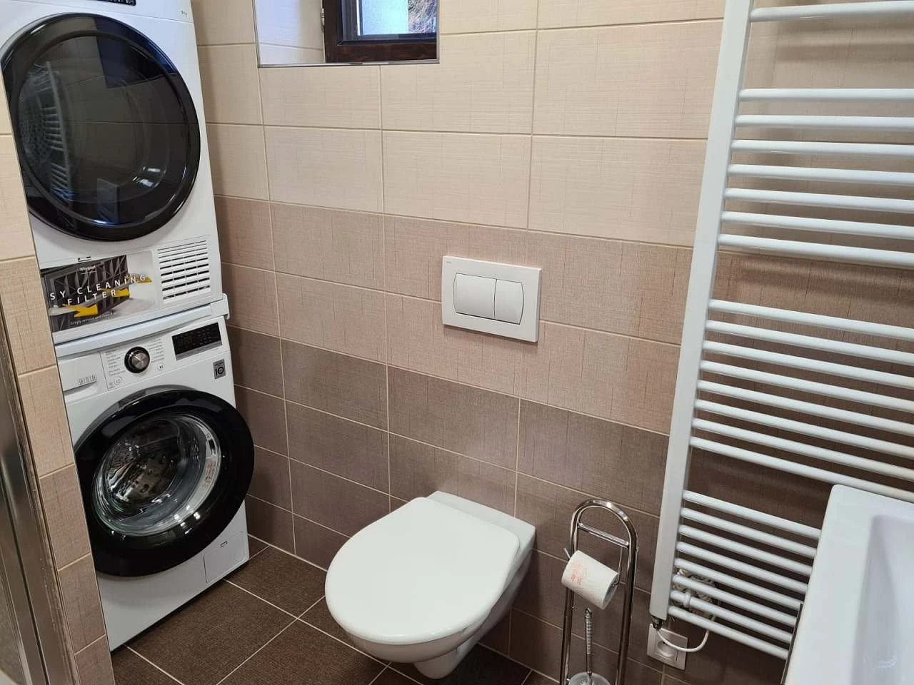 - Koupelna se sprchovým koutem a WC, umyvadlem, pračkou a sušičkou.