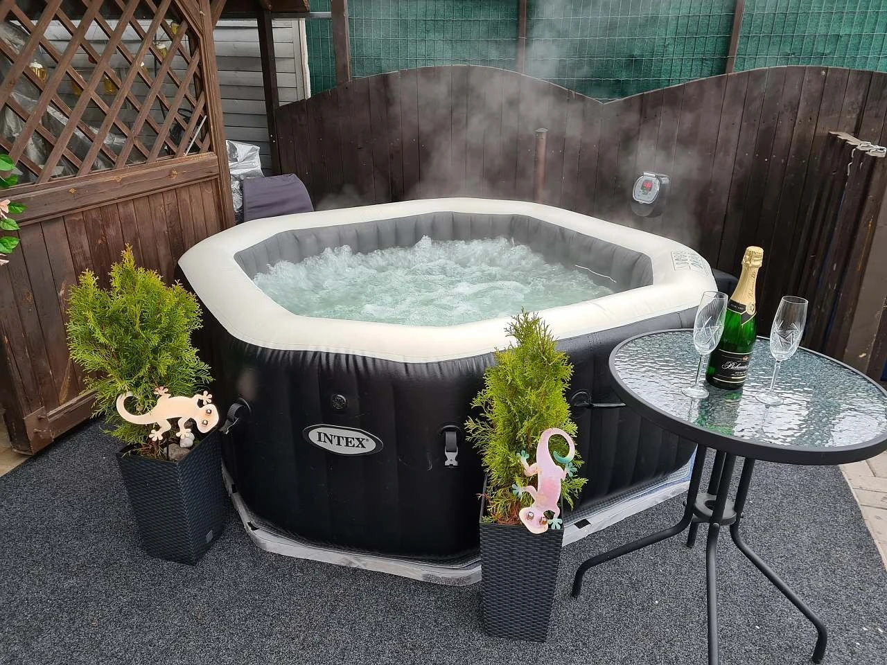 Objekt je součástí dvougeneračního rodinného domu a apartmán se nachází v prvním patře. Součástí vybavení je krytý venkovní bazén (průměr 3,4 m, hloubka 120 cm, vyhřívaná voda 26 °C), vířivka pro 4 osoby a rohová infrasauna pro 3–4 osoby ve společenské místnosti. Pro volný čas je k dispozici travnatá plocha s posezením a možností sportovních aktivit (petanque, badminton, kroket). V letních měsících je k dispozici pergola s venkovním grilem.