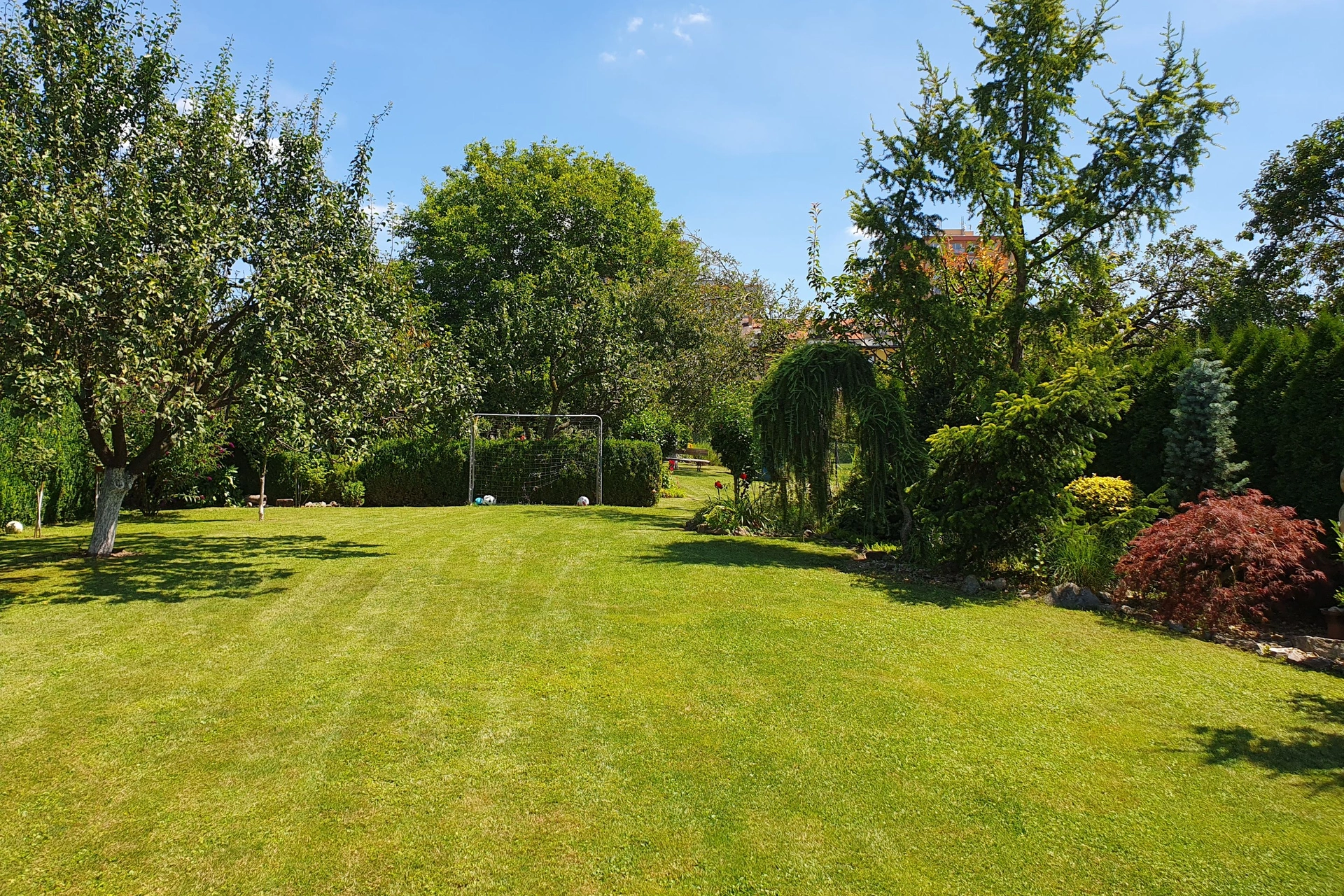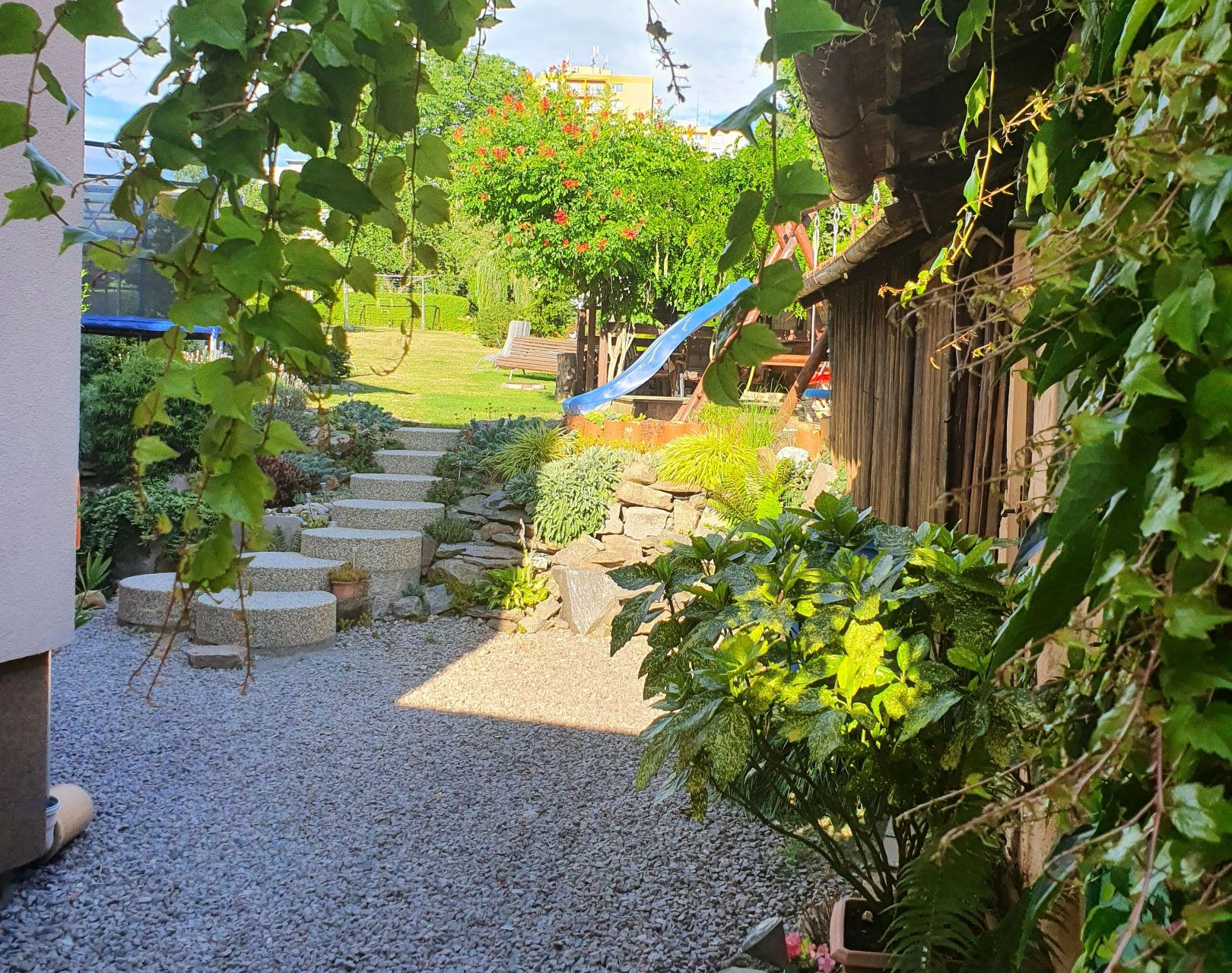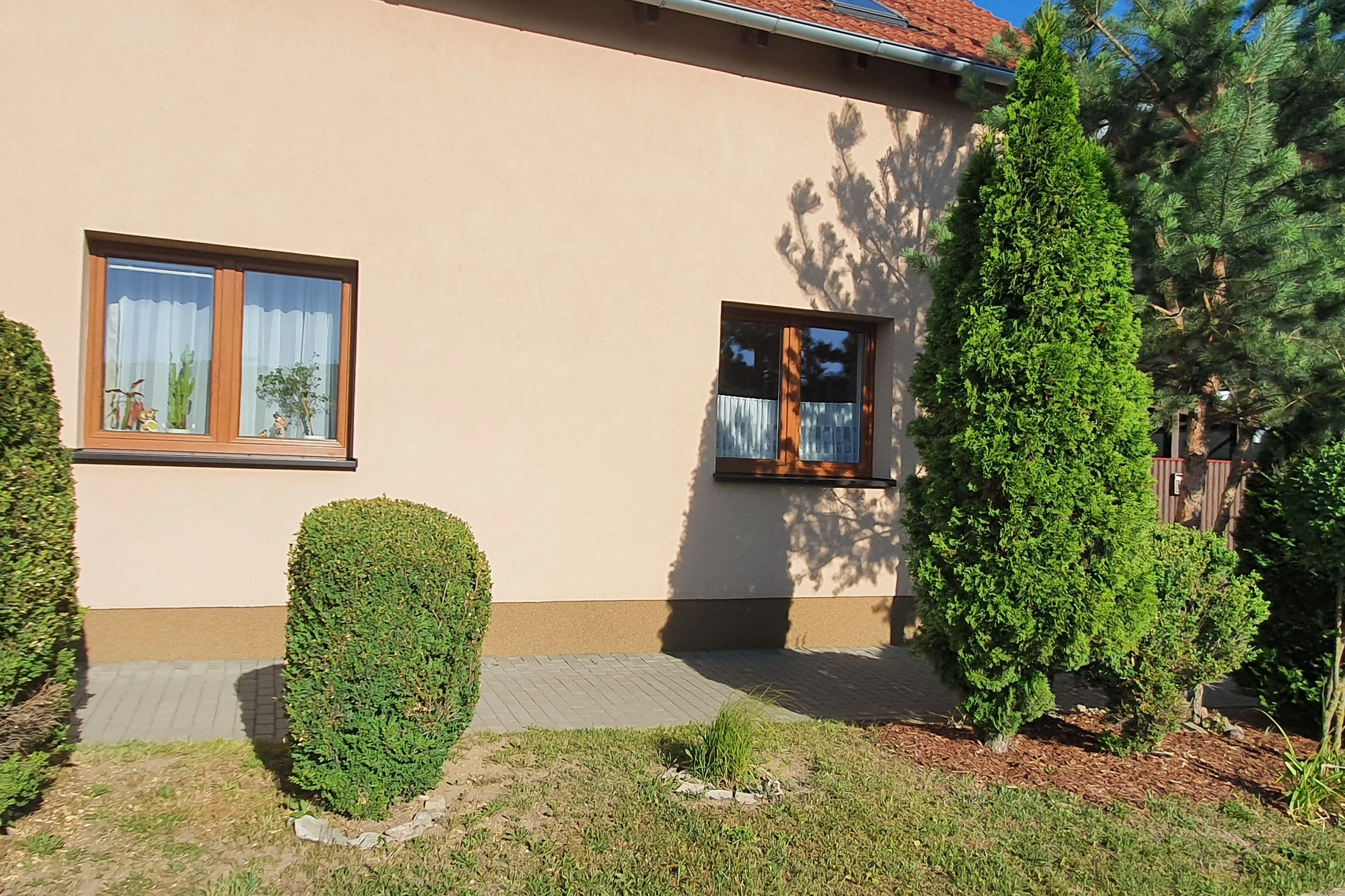 Za domem se nachází rozsáhlá zahrada s pergolou, možností posezení, ohniště a zapůjčení grilu. Pro děti je k dispozici pískoviště, houpačky, fotbalová branka, trampolína a velký travnatý prostor na hraní, včetně dětských hraček. Kola lze uschovat na dvoře, parkování je možné přímo před domem s výhledem z oken apartmánu. V ceně ubytování je zahrnuto ložní prádlo, ručníky, utěrky, základní hygienické a čisticí prostředky, Wi-Fi v celém objektu, závěrečný úklid i místní poplatek městu. Ubytování není umožněno s domácími mazlíčky.