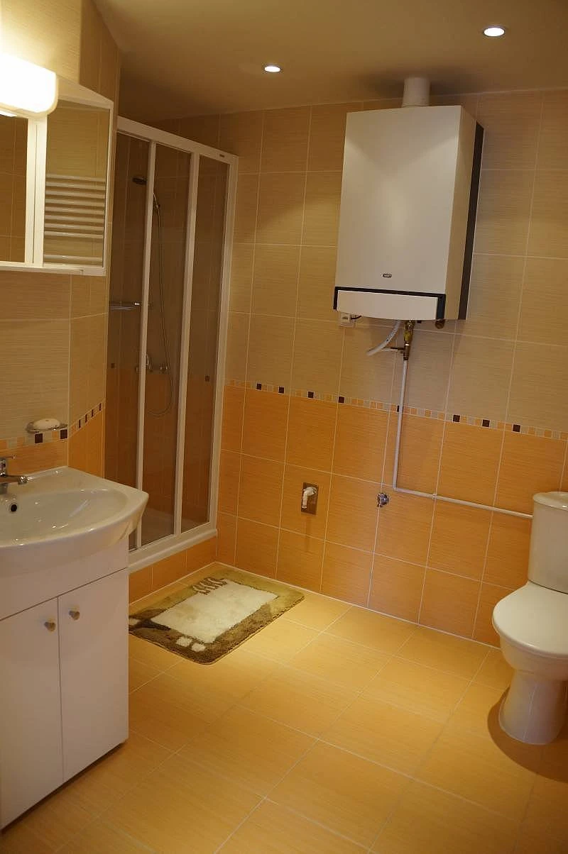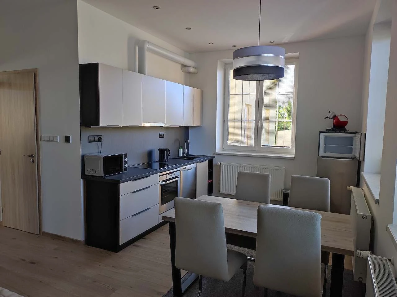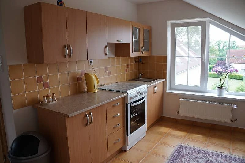 Každý apartmán má plně vybavenou kuchyni, která zahrnuje horkovzdušnou troubu, lednici s mrazákem, mikrovlnnou troubu, topinkovač, toustovač, kávovar a mixér. Sociální zařízení je řešeno koupelnou se sprchovým koutem a toaletou v každém apartmánu. Vytápění je ústřední plynové. Parkování je zajištěno přímo u objektu, ke každému apartmánu náleží jedno parkovací místo. Stravování je možné ve vlastní kuchyni nebo v místní restauraci v obci.