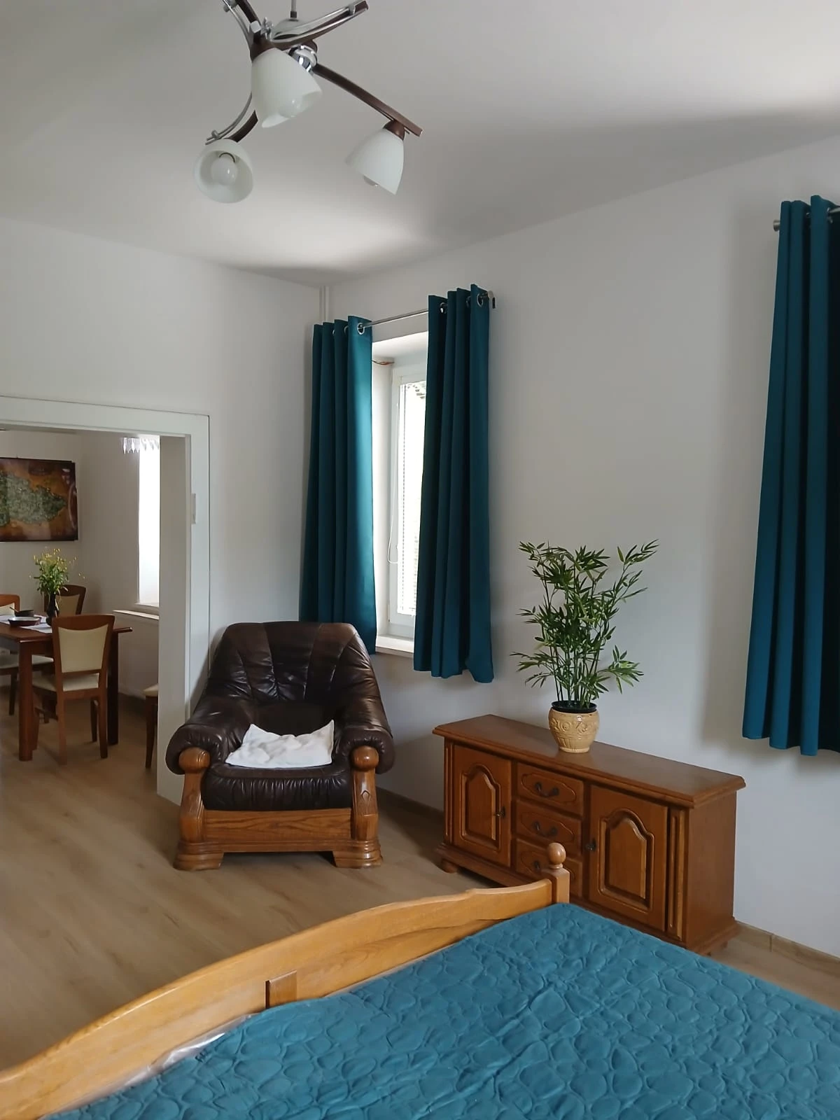 Apartmán se nachází v 1. patře rodinného domu a je určen pro ubytování dvou osob s možností přistýlky pro třetí osobu za poplatek. Dispozice zahrnuje plně vybavenou kuchyň s jídelní částí, obývací prostor s lůžkem a TV a prostornou koupelnu se sprchovým koutem.