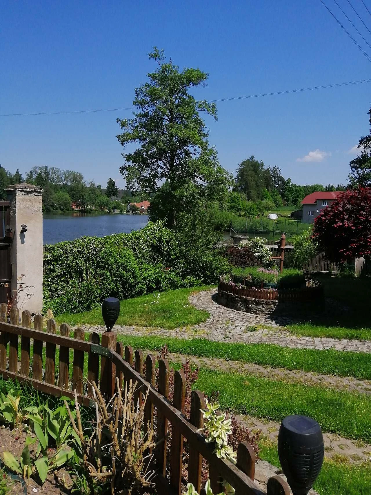Klidná lokalita u potoka a u lesa, vhodná pro pobyt v přírodě.