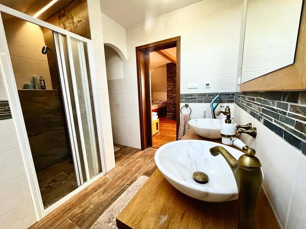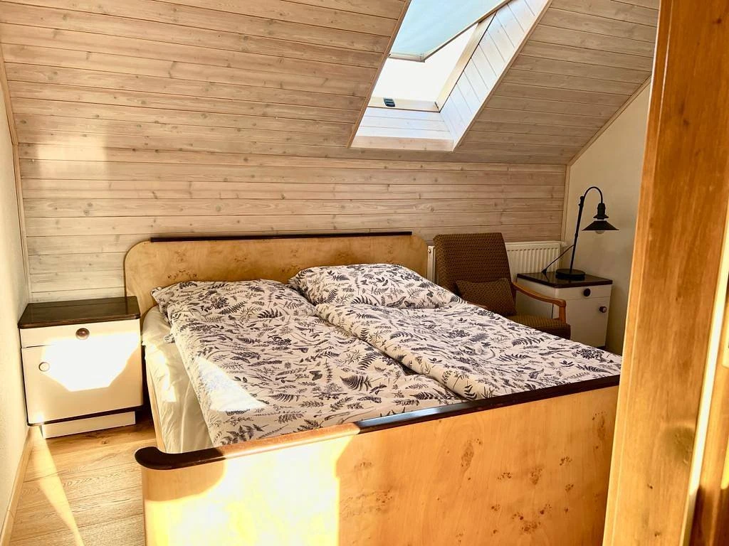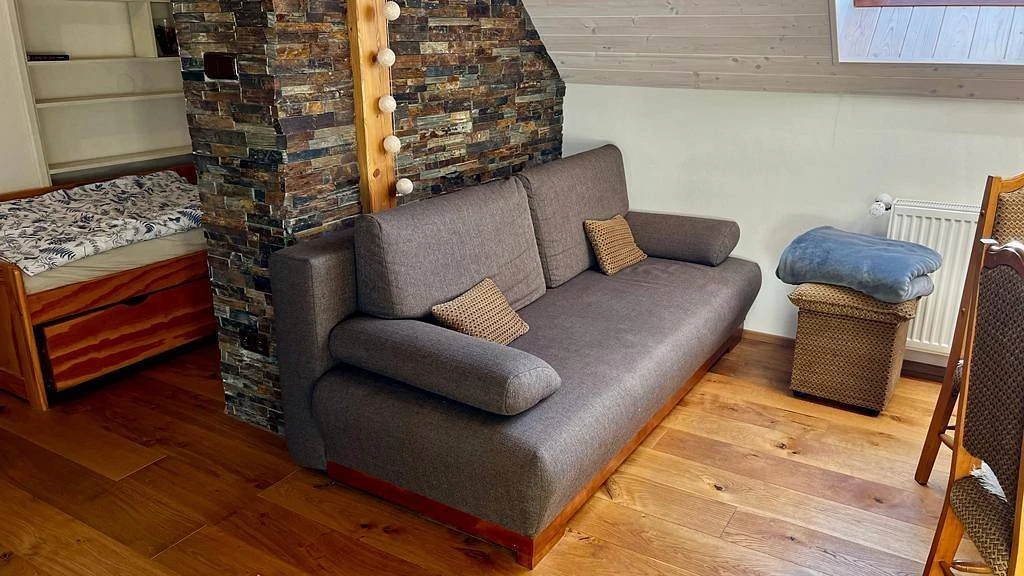 Apartmán Křídla na Vysočině nabízí ubytování pro 6 osob. Má jednu samostatnou ložnici s manželskou postelí a skříní, ve společné místnosti jsou 2 jednolůžkové postele a rozkládací gauč pro 2 osoby. Apartmán je vybaven vlastní koupelnou se sprchovým koutem, WC a dvěma umyvadly se skříňkou. V zimních měsících je vytápění plynem. K apartmánu vede příjezdová cesta a parkování je možné u silnice nebo pod přístřeškem přímo u domu. K dispozici je plně vybavená kuchyňská linka se sporákem, troubou a lednicí.