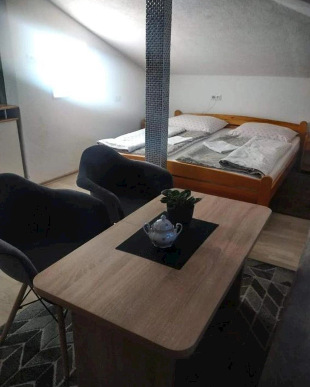 - Apartmán pro 4 osoby: manželská postel a 2 oddělená lůžka v ložnici.