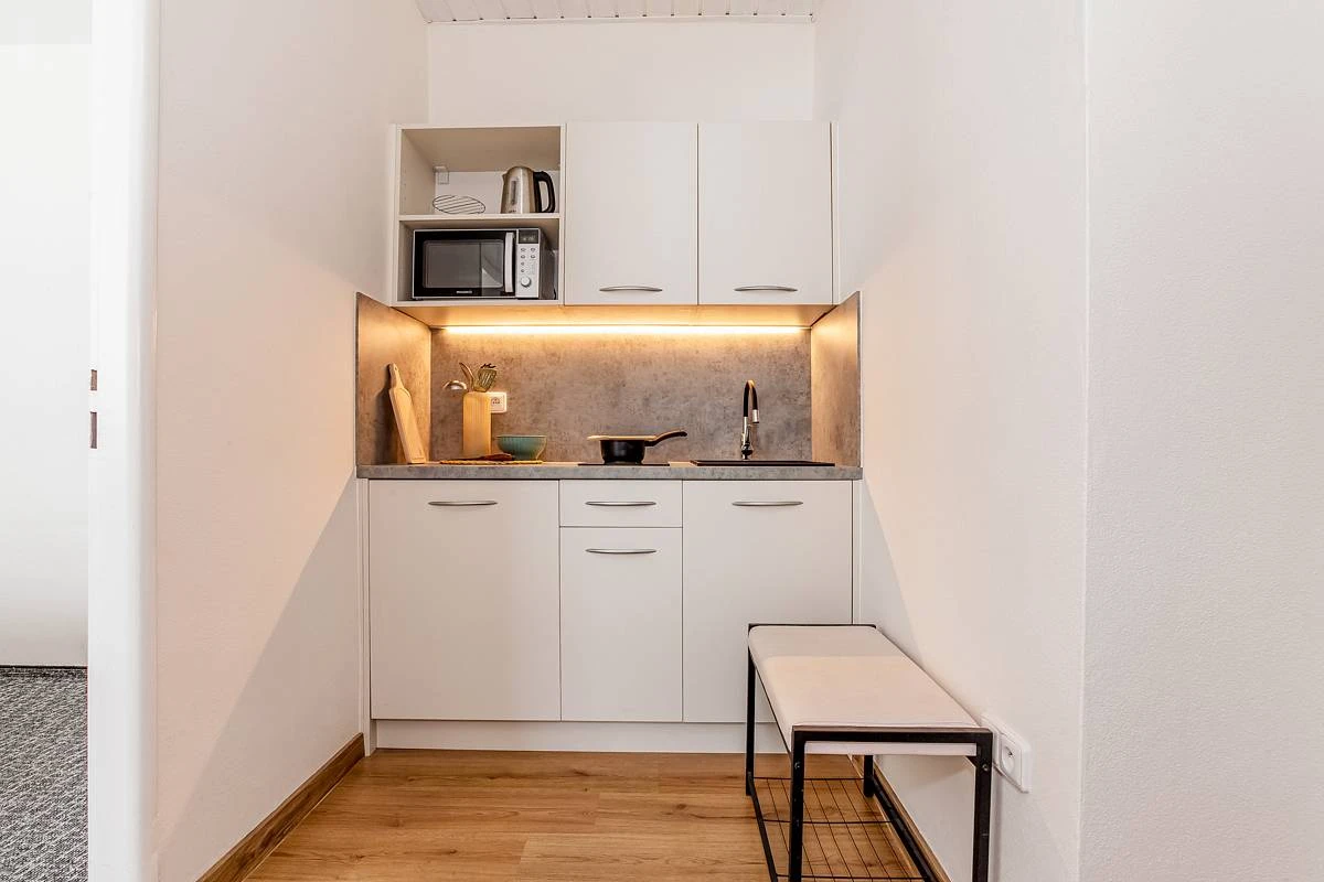 Apartmán v Rejštejně je určen pro ubytování 1 až 2 osob. Nabízí dispozici 1+1, která zahrnuje ložnici, koupelnu, WC a kuchyňku. Koupelna je vybavena sprchovým koutem. V apartmánu je k dispozici vytápění. Parkování je možné 100 metrů od apartmánu. Hosté mohou využít plně vybavenou kuchyňku pro vlastní stravování. Vnitřní vybavení zahrnuje ložní prádlo, ručníky a osušky.