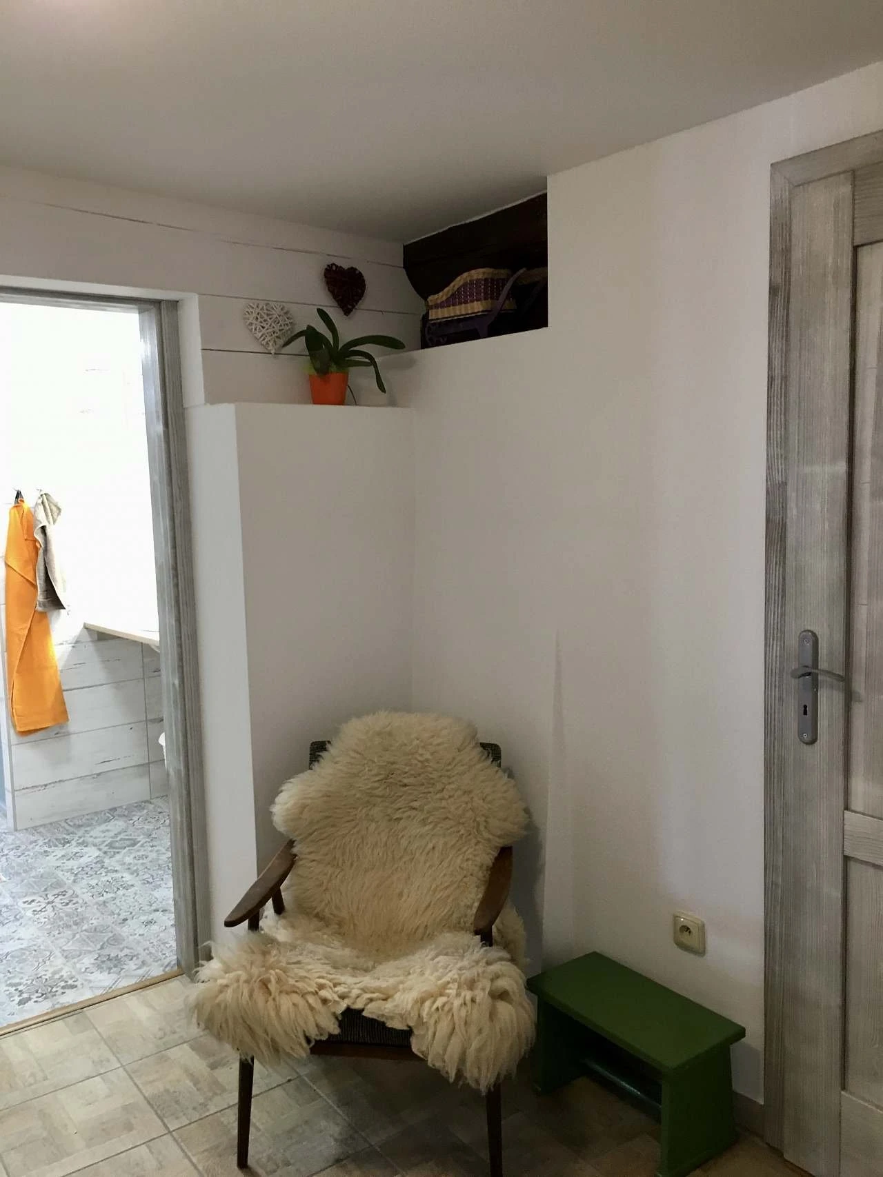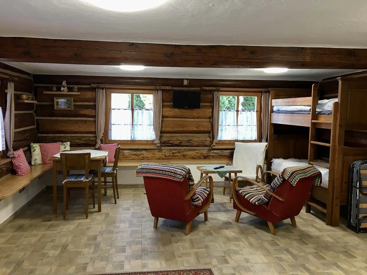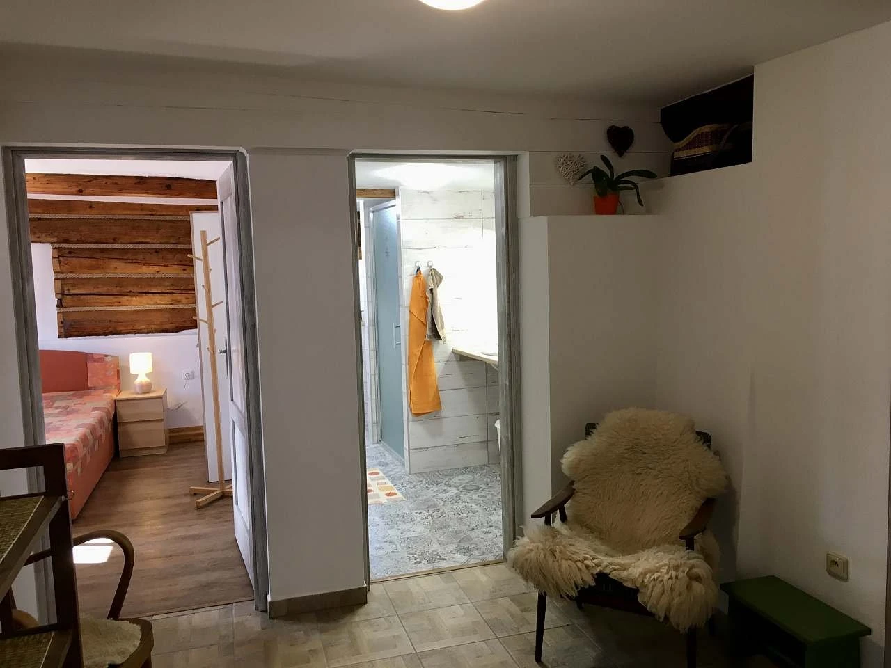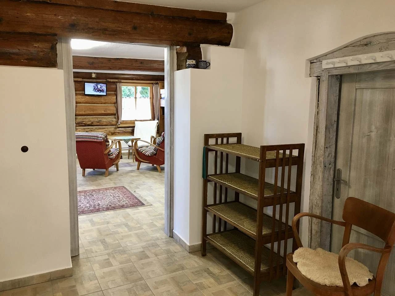 Apartmán poskytuje pohodlné ubytování pro maximálně 5 osob. K dispozici je jedna ložnice a jedna velká sednice, ve které je kachlový sporák na dřevo s prosklenými dvířky. Nová koupelna je vybavena sprchovým koutem. V celém apartmánu je nové tepelné čerpadlo s podlahovým vytápěním. Parkování je možné přímo na vlastním pozemku u roubenky. V blízkosti jsou COOP, drogerie, masna, trafika, bazar jen 200 m, autobusové nádraží je vzdálené 300 m.