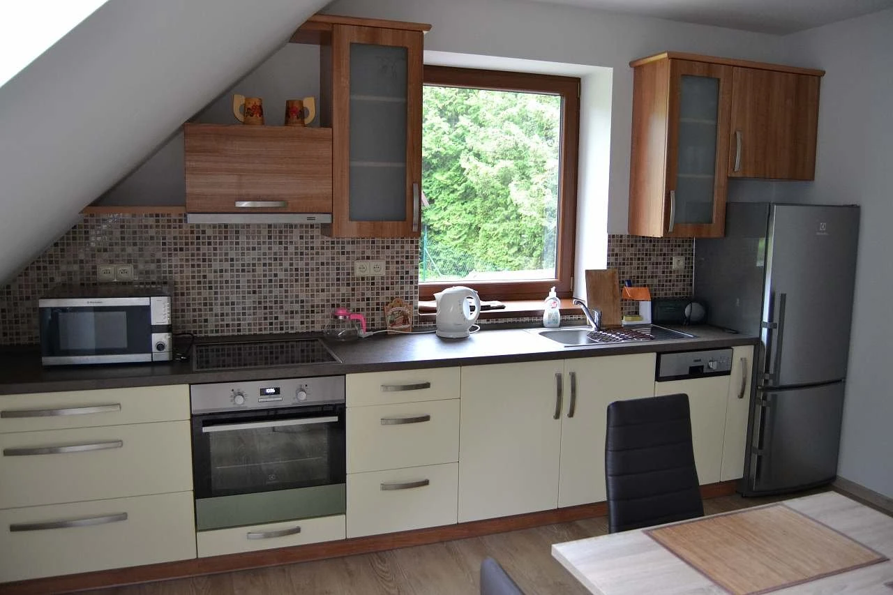 Kapacita ubytování je až 8 osob. K dispozici jsou dvě ložnice, přičemž v každé se nachází manželská postel a rozkládací gauč využitelný jako plnohodnotné dvojlůžko. Součástí apartmánu je plně vybavená kuchyň včetně myčky nádobí. Celý objekt je nekuřácký.