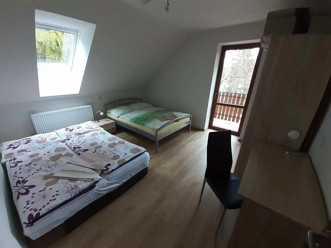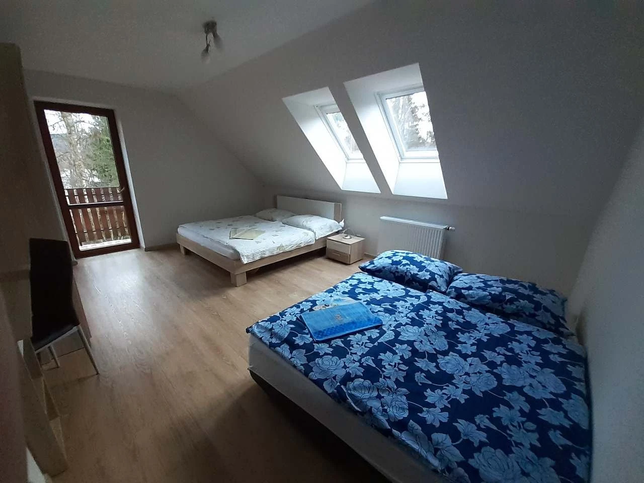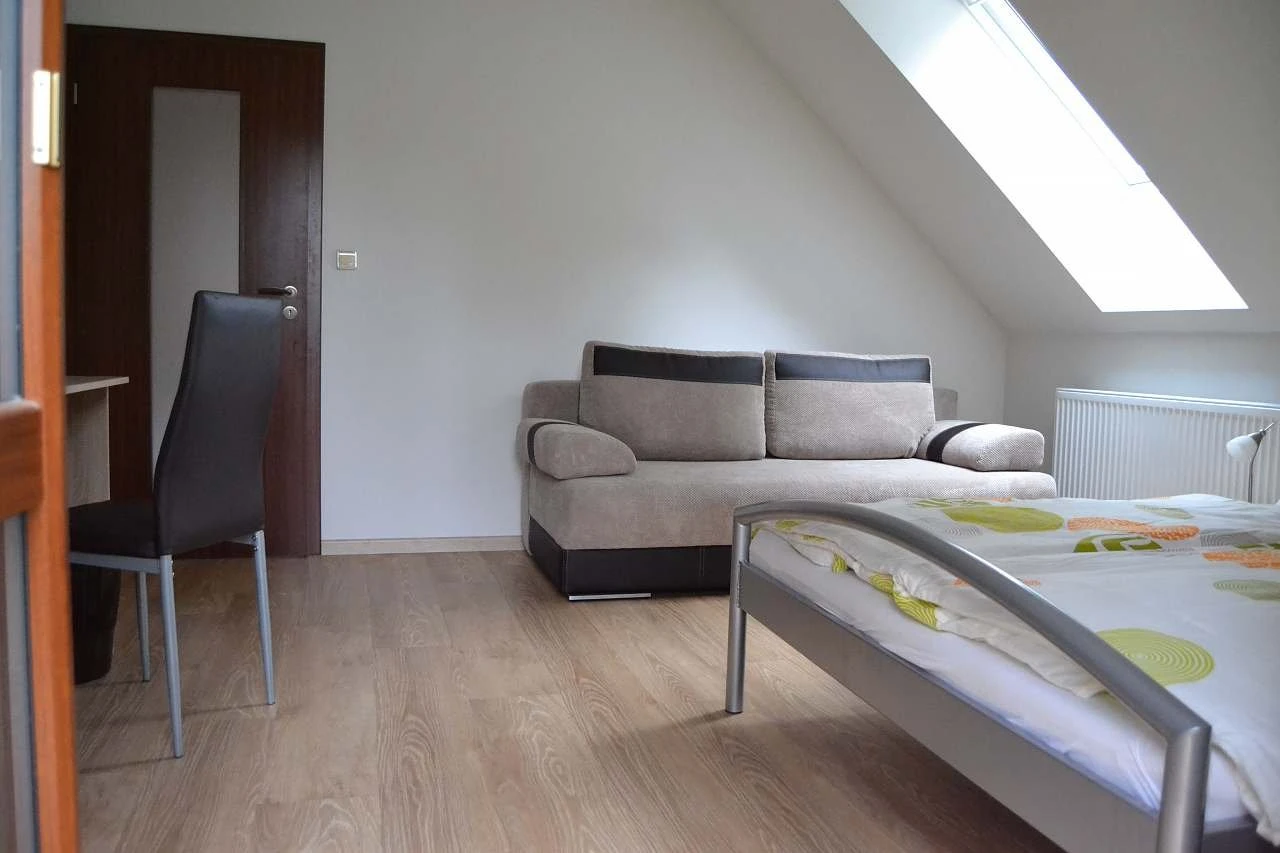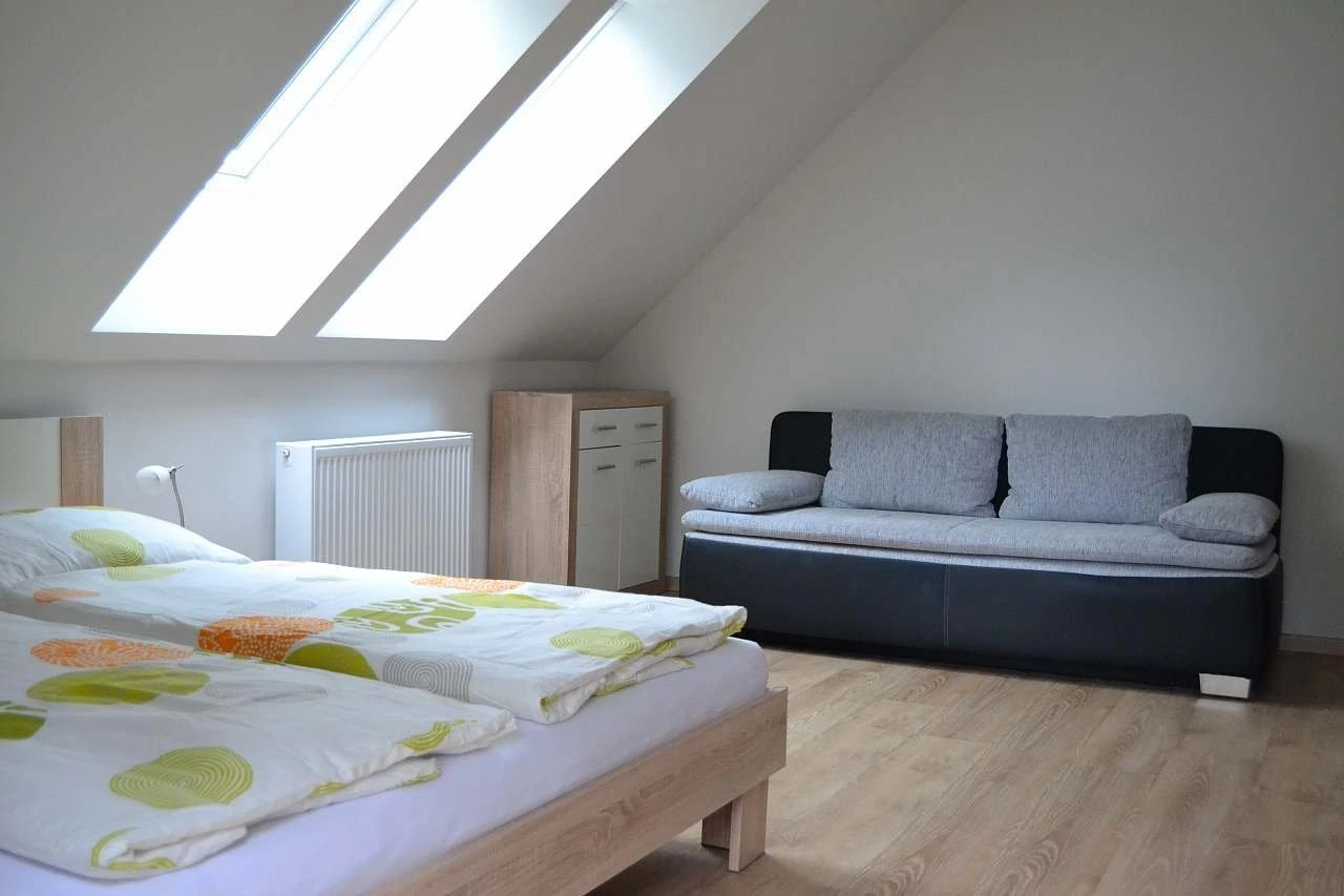 - V každé ložnici manželská postel + rozkládací gauč (dvojlůžko)