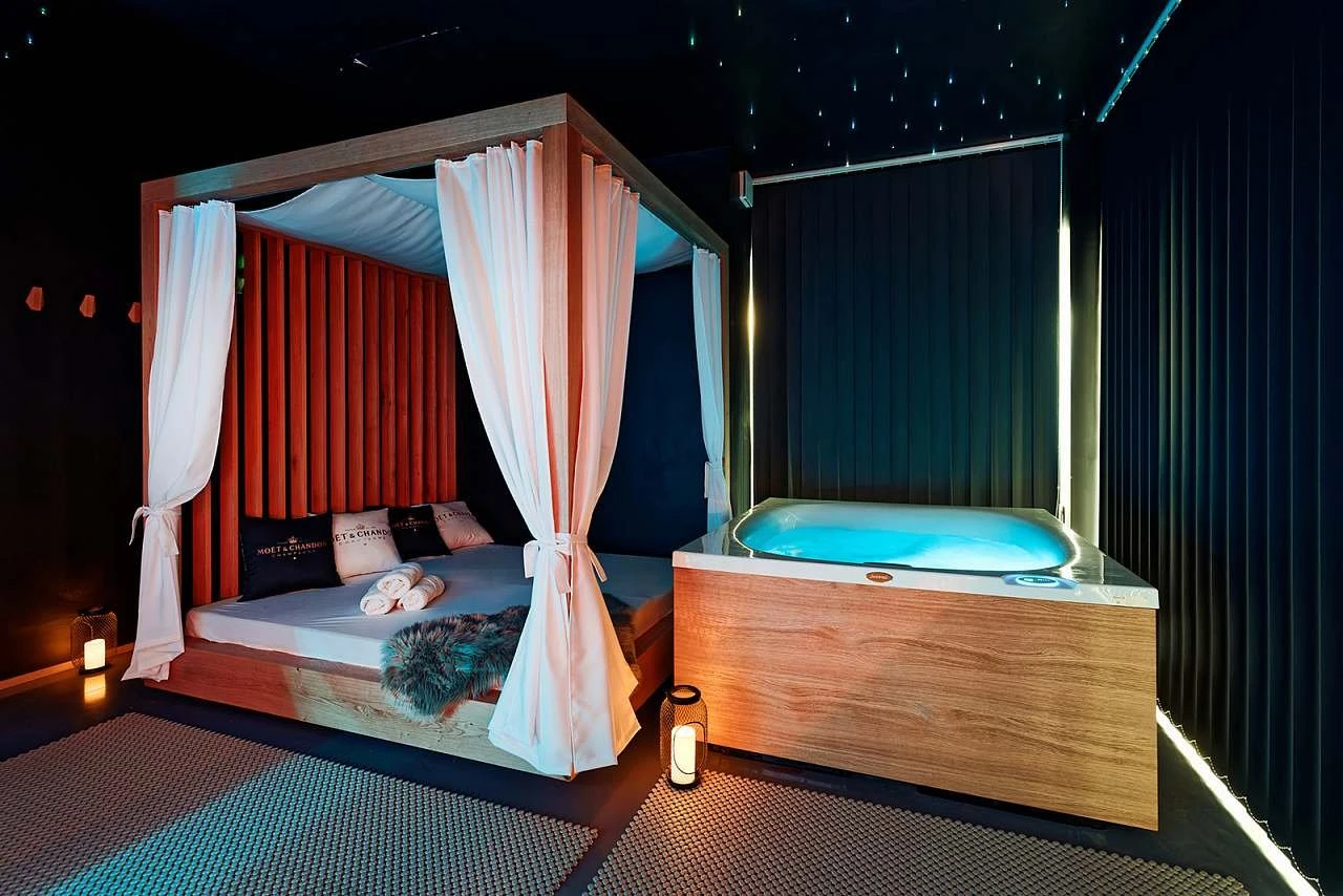 Wellness část zahrnuje finskou saunu Jacuzzi Sasha, parní lázeň, zážitkovou sprchu s několika režimy, relaxační lůžko a vířivku Jacuzzi. Wellness je plně soukromé a přístupné přímo z apartmánu.