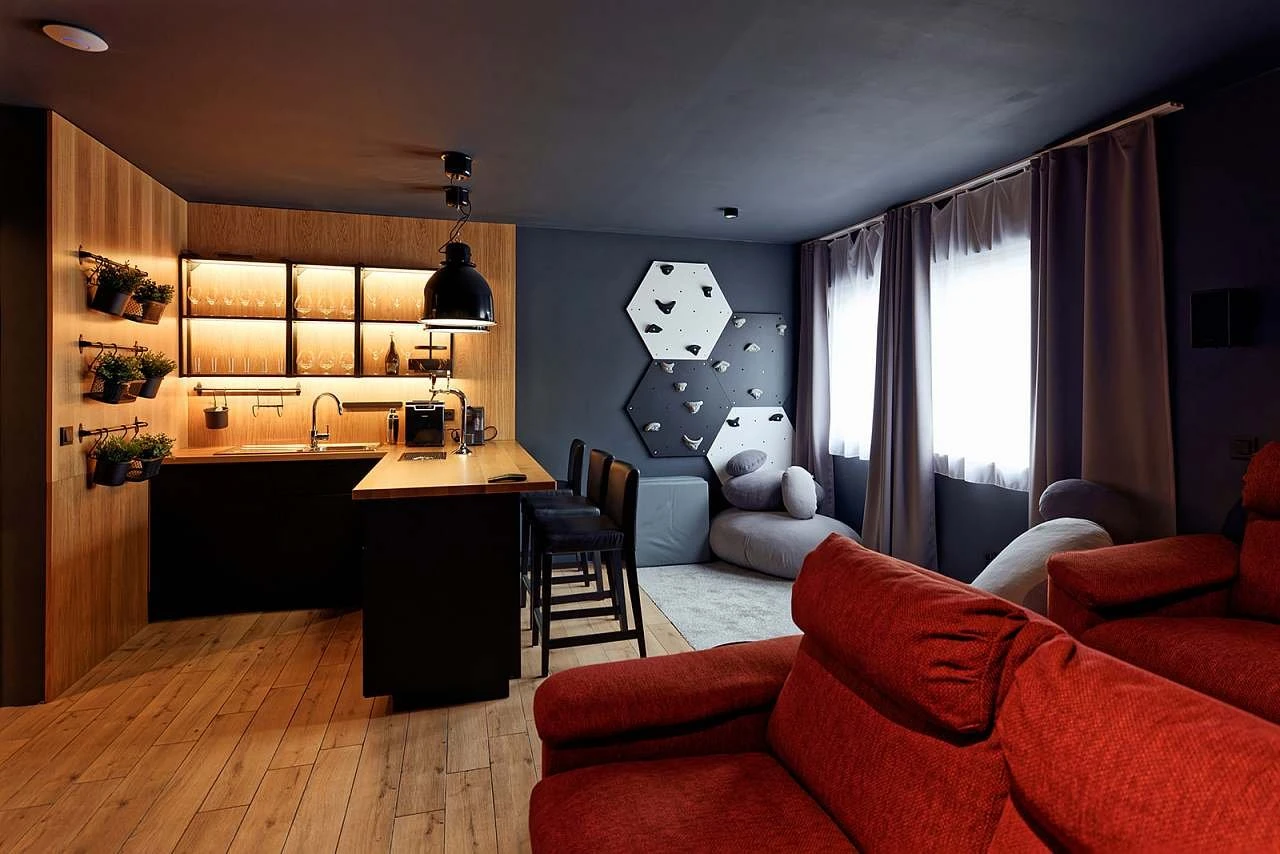 Apartmán Volavka je vždy pronajímán výhradně jako celek jedné rodině nebo skupině, což zajišťuje maximální soukromí bez sdílení prostor s dalšími hosty. Součástí ubytování je soukromý kinosál a wellness zóna, které jsou hostům k dispozici po celou dobu pobytu.