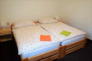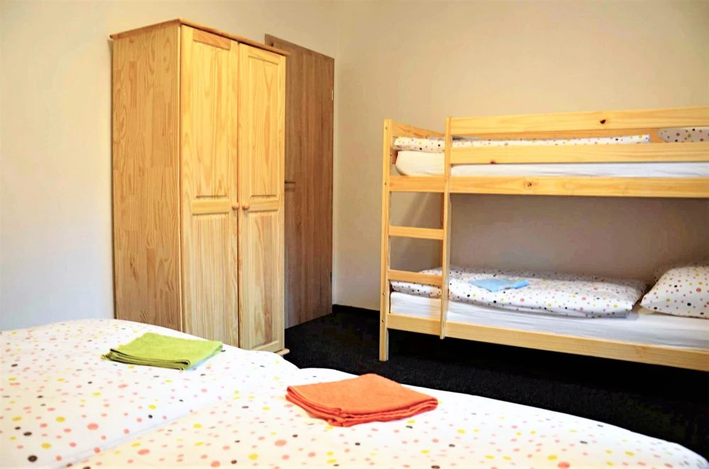 - 1 dvoulůžkový, 3 třílůžkové a 1 čtyřlůžkový pokoj.