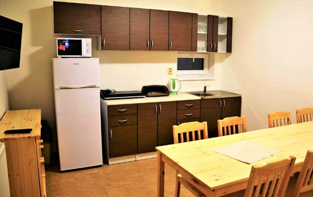- Kapacita 5 osob, kuchyňka s lednicí, varnou deskou, mikrovlnkou, kávovarem.