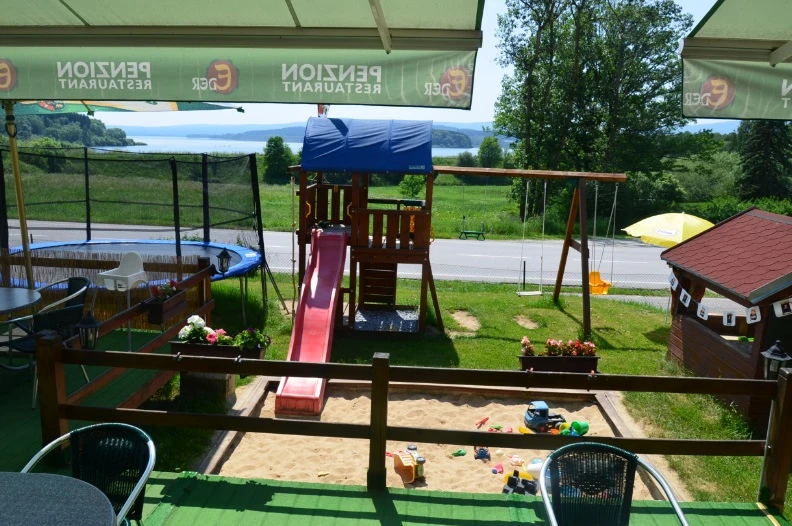 - Houpačka a dětské hřiště před restaurací.