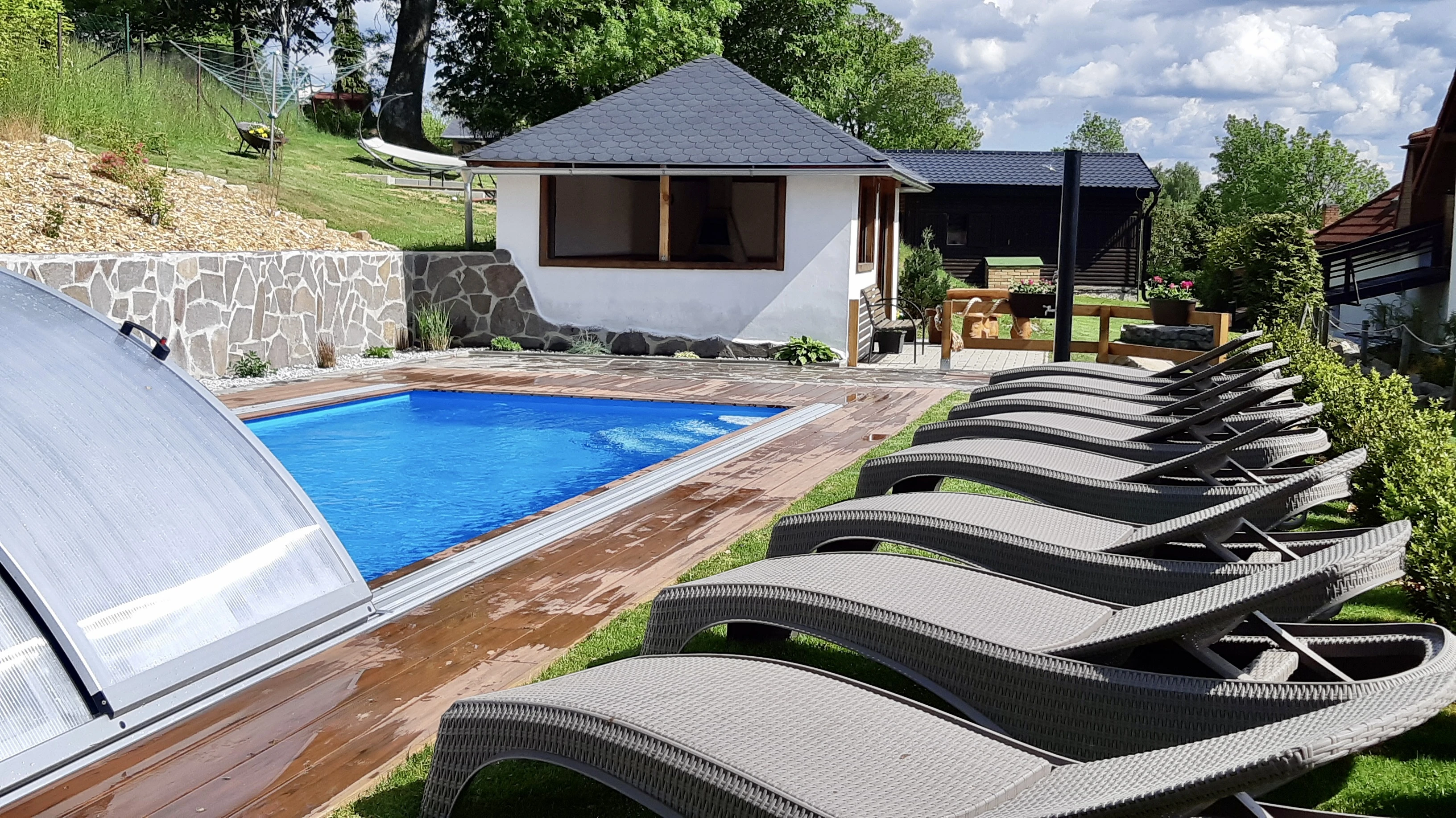 - Přímo u bazénu je grilovací domek.