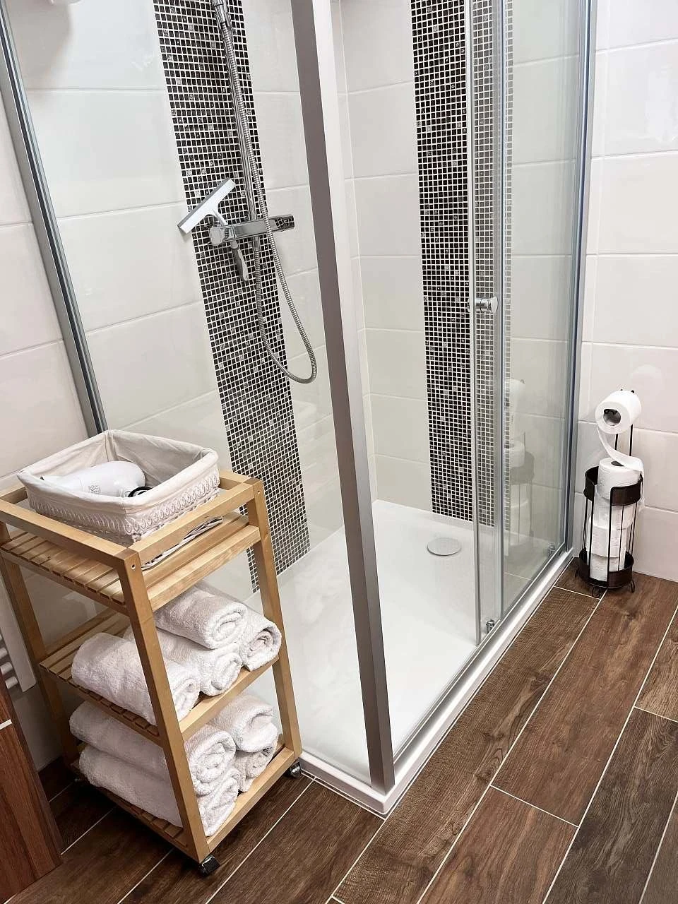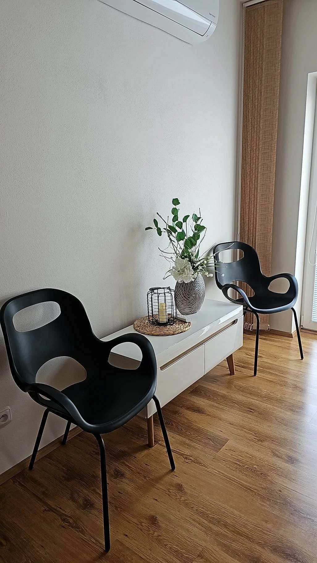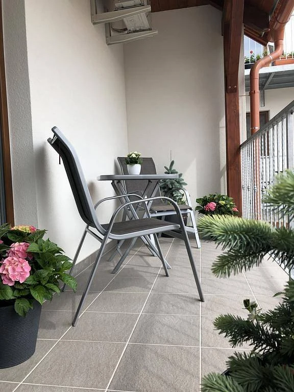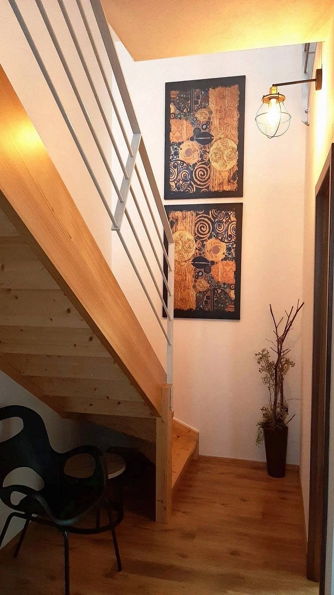 Apartmán je vybaven: Ubytování až pro 6 osob 1x manželská postel, 1x rozkládací postel, 1x rozkládací sedačka Plně vybavená kuchyňská linka (lednice, indukční varná deska a horkovzdušná trouba , myčka na nádobí, kávovar, rychlovarná konvice) Koupelna se sprchovým koutem a fénem Zastřešený balkón s posezením Klimatizace TV a Internet Parkovací místo u apartmánu Kóje pro uschování kol Společné prostory Vinný sklípek s posezením a možností výběru vín dle ceníku Welcome drink- láhev vína