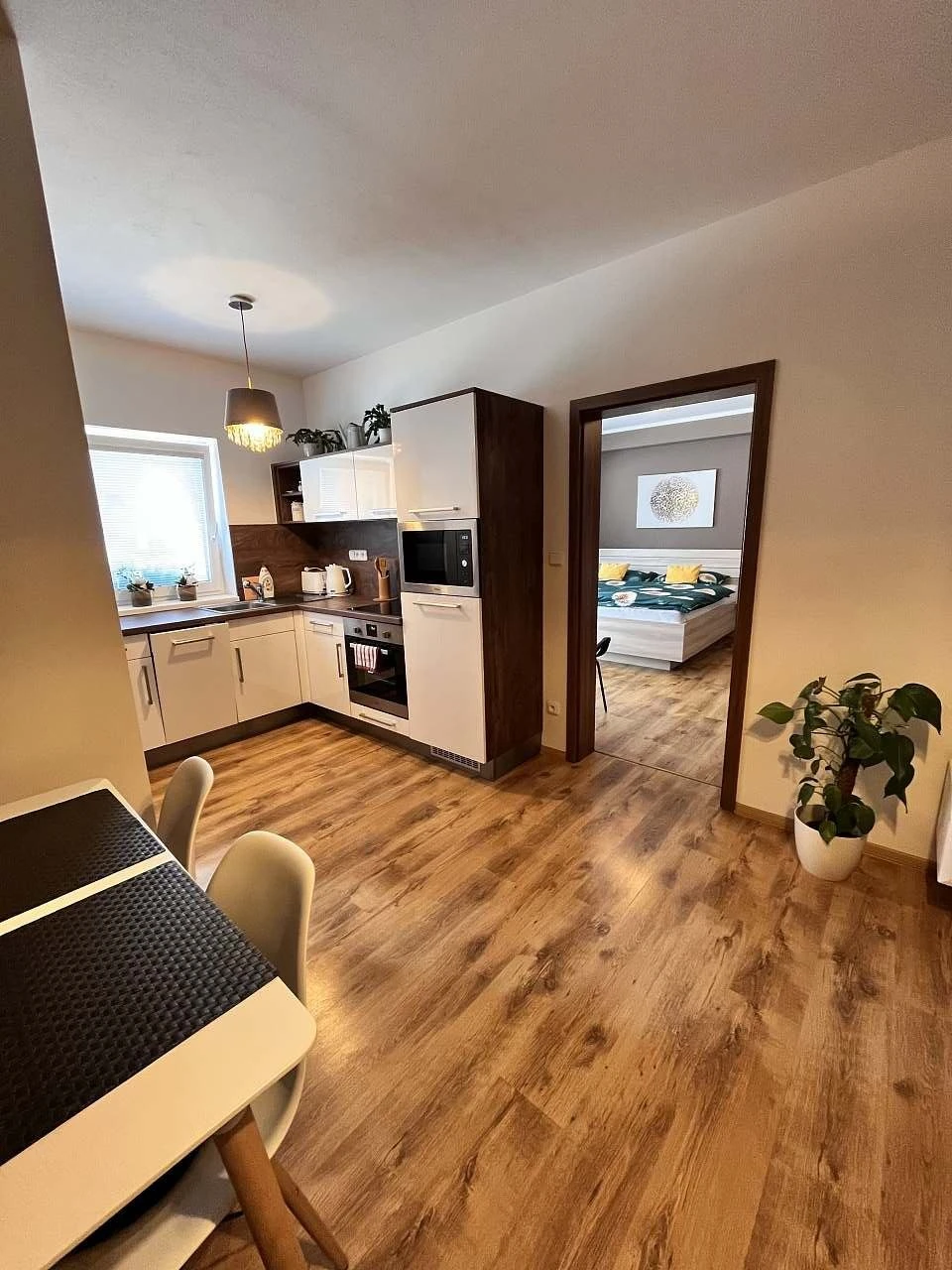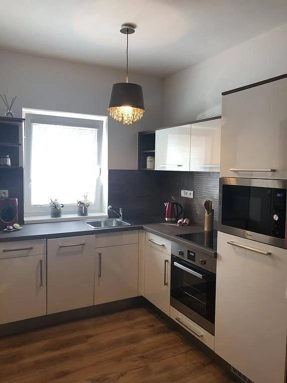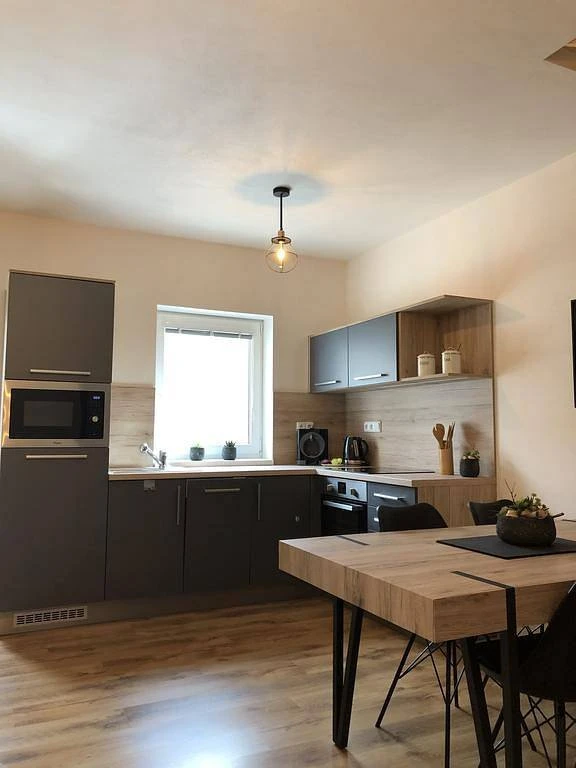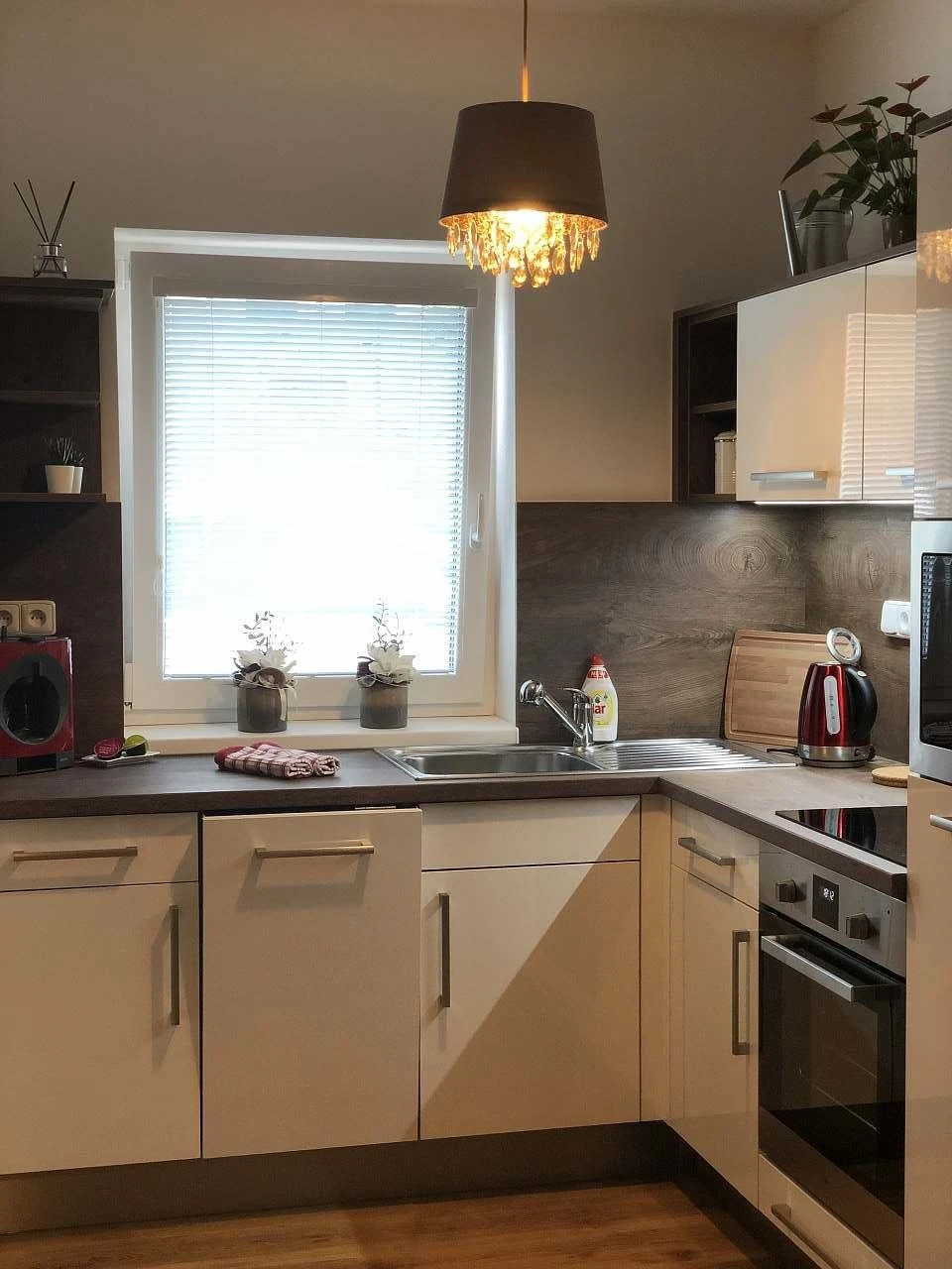 - Plně vybavená kuchyňská linka (lednice, indukční varná deska a horkovzdušná trouba , myčka na nádobí, kávovar, rychlovarná konvice)