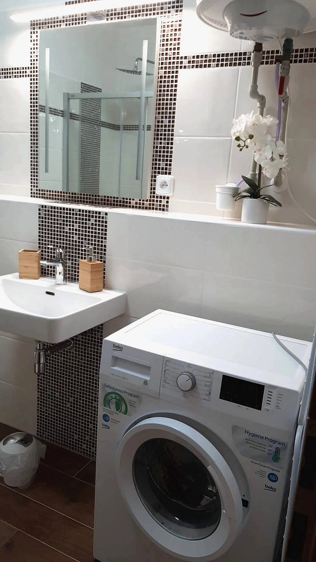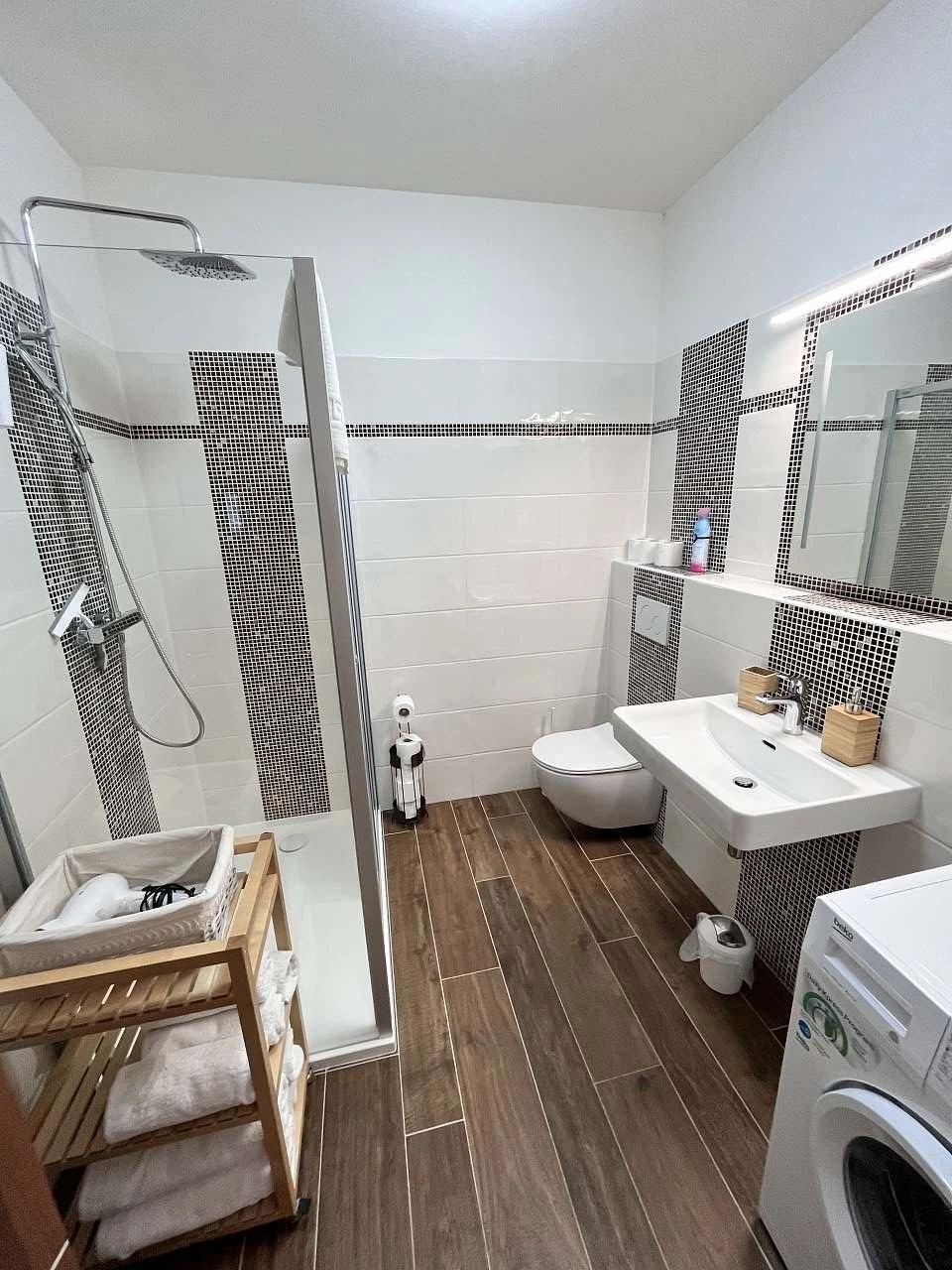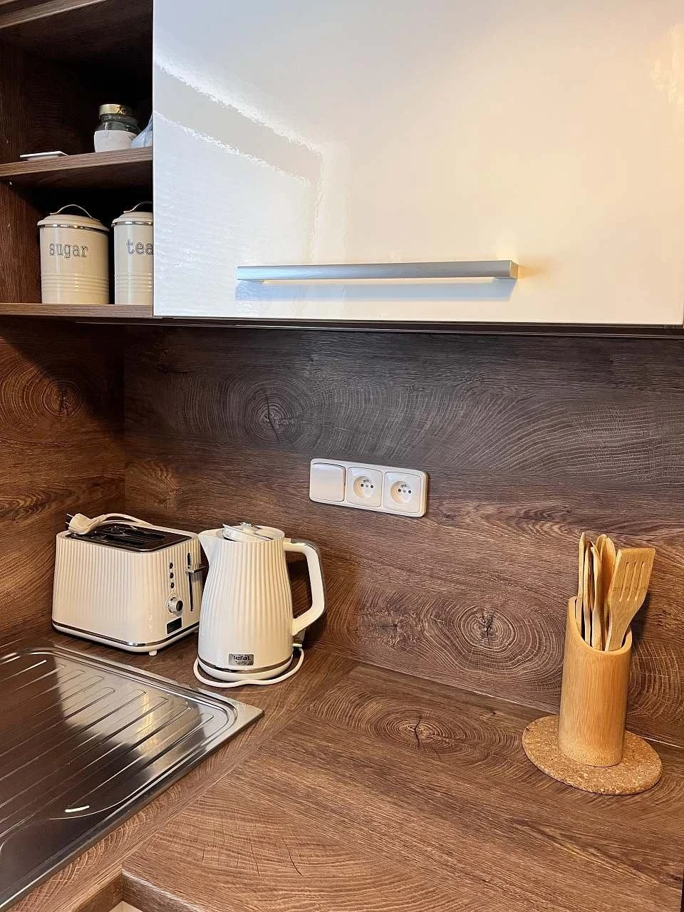 - Plně vybavená kuchyňská linka (lednice, indukční varná deska a horkovzdušná trouba , myčka na nádobí, kávovar, rychlovarná konvice)