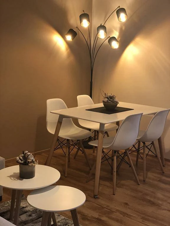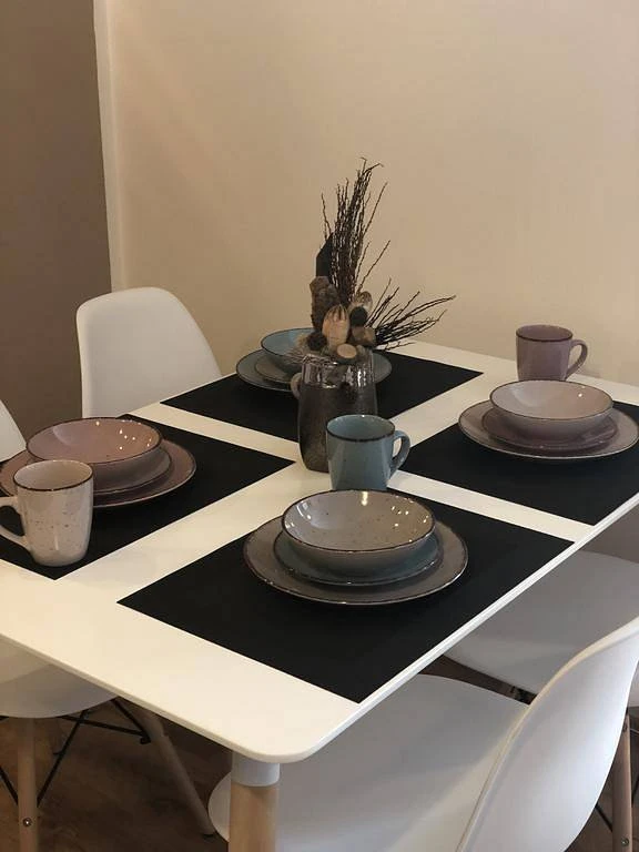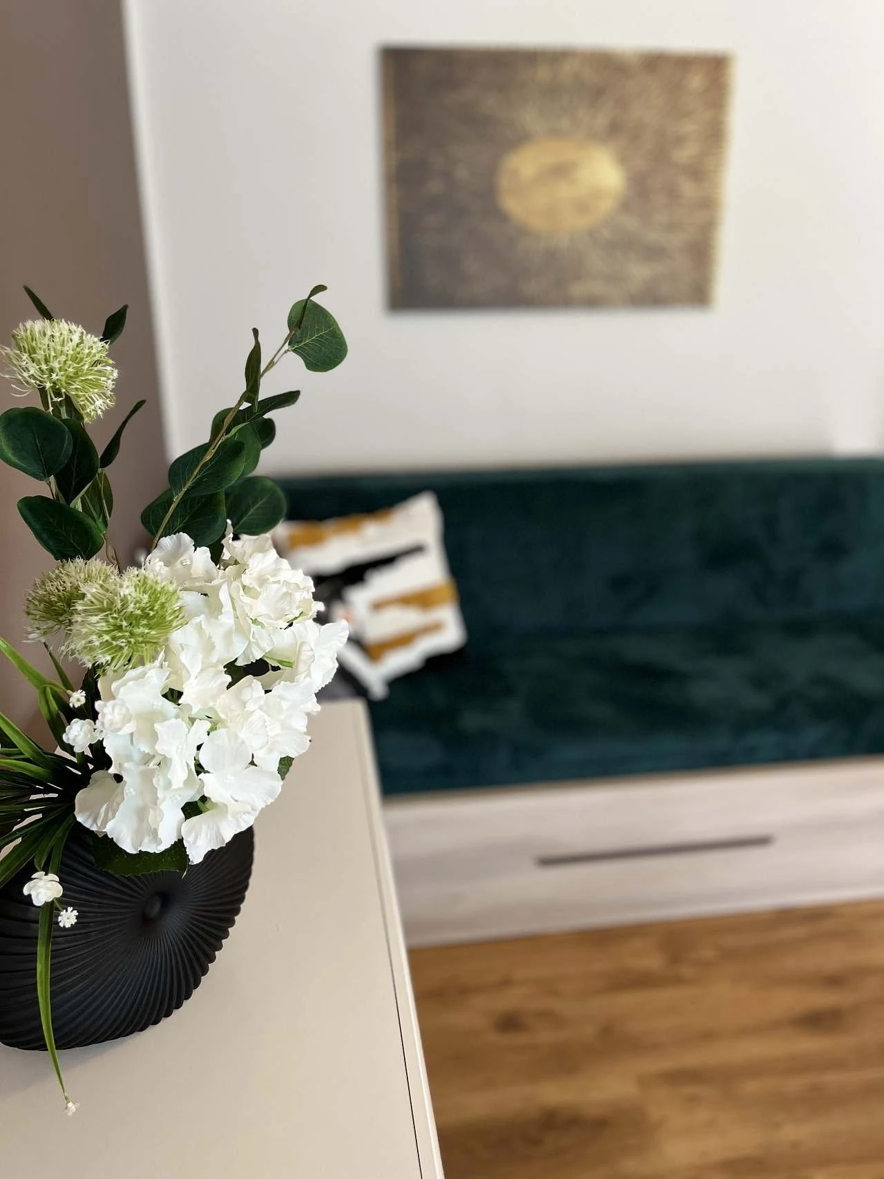 Každý apartmán je plně vybaven a připraven pro krátkodobé i delší pobyty. K dispozici je povlečení, ručníky, plně vybavená kuchyň s lednicí, indukční varnou deskou, troubou, myčkou nádobí (včetně tablet), mikrovlnnou troubou, rychlovarnou konvicí a kávovarem. Součástí vybavení jsou také kuchyňské utěrky, toaletní papír, pračka a sušák na prádlo.