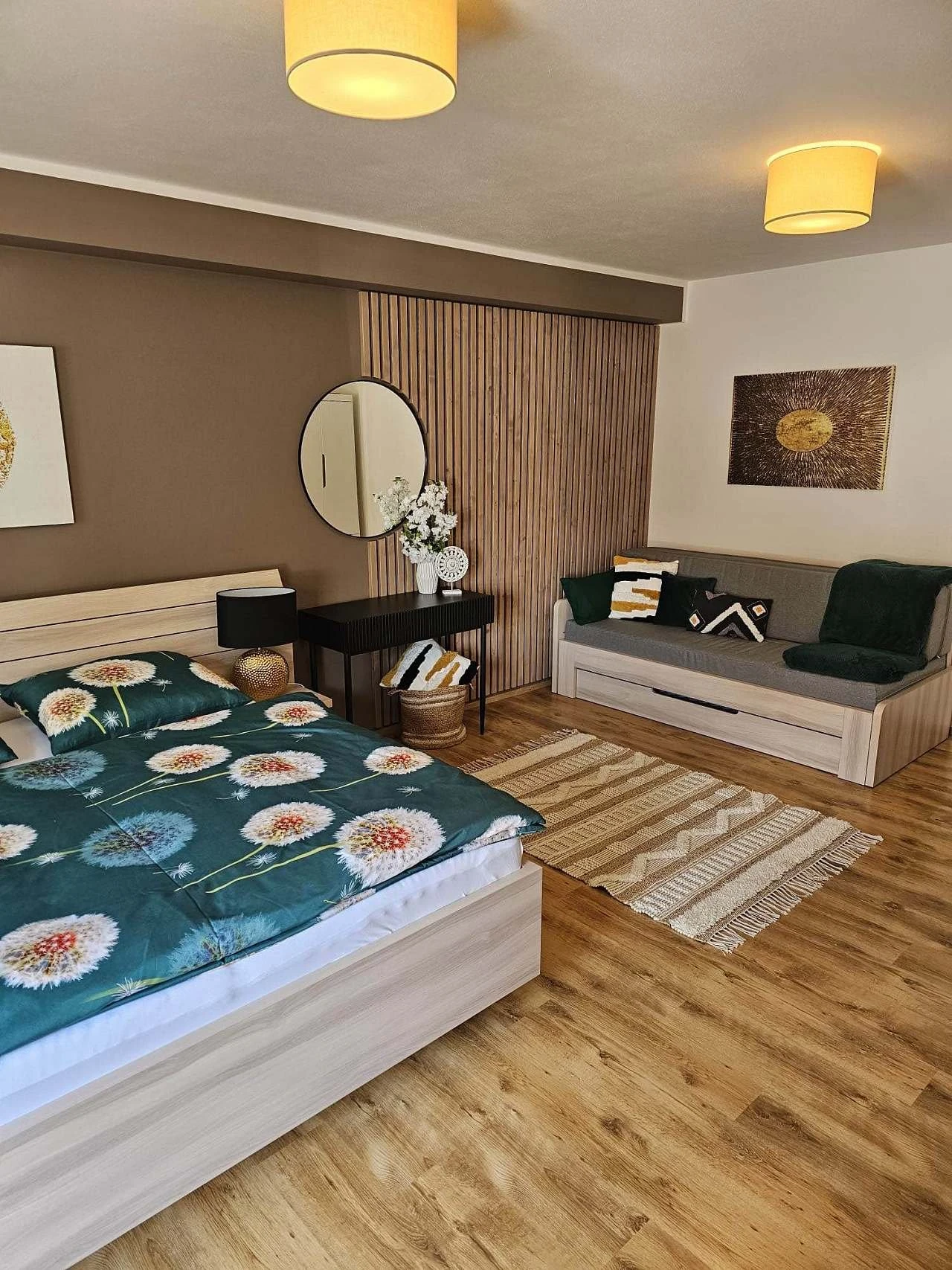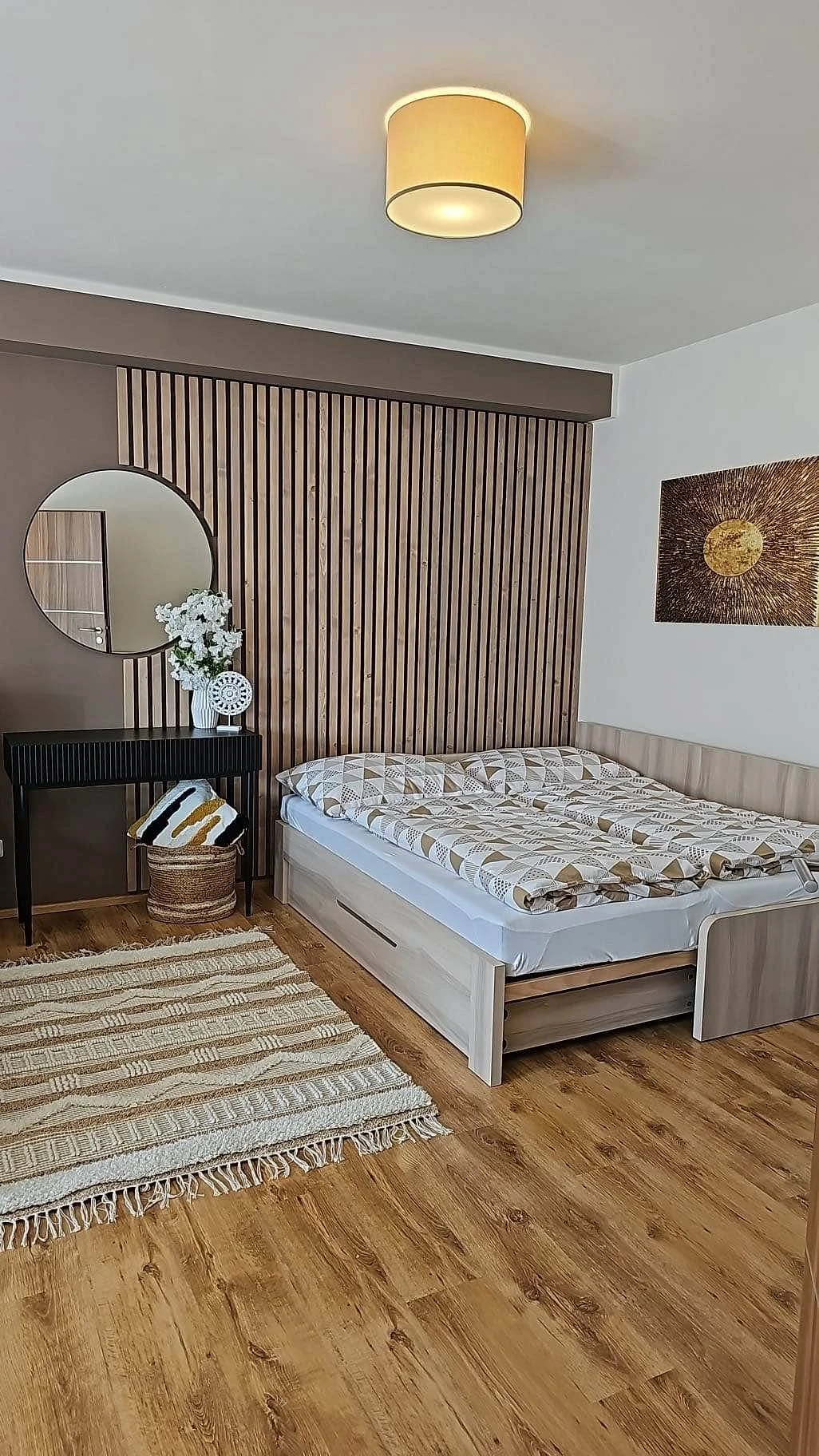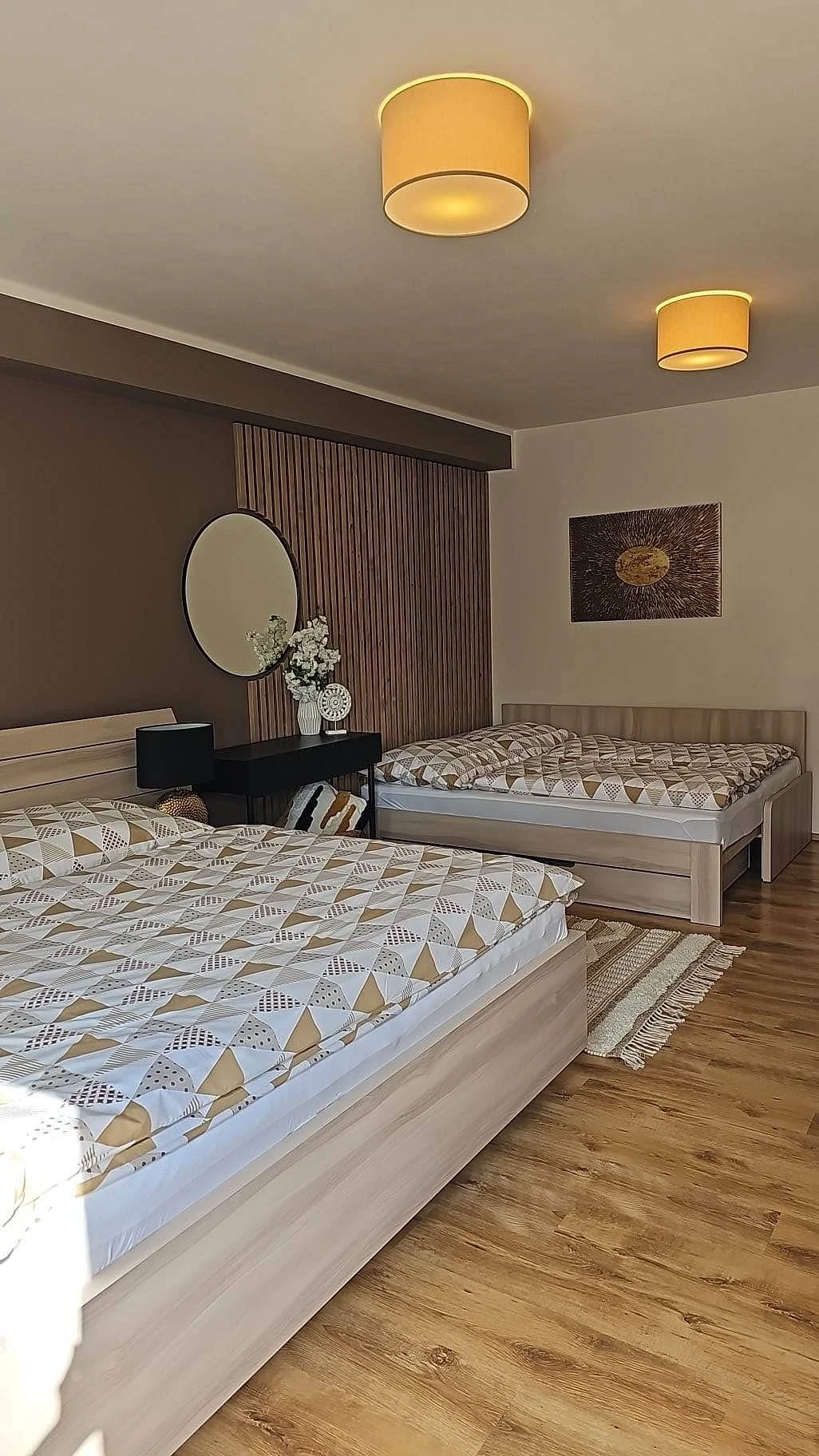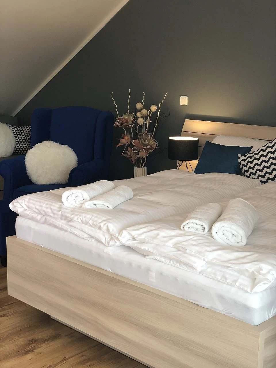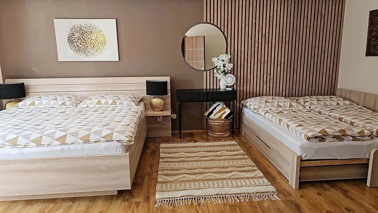 - 1x manželská postel, 1x rozkládací postel, 1x rozkládací sedačka