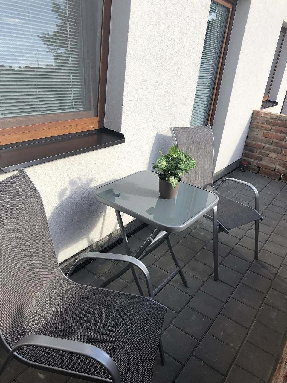 Apartmán je vybaven: Ubytování až pro 6 osob 1x manželská postel, 1x rozkládací postel, 1x rozkládací sedačka Plně vybavená kuchyňská linka (lednice, indukční varná deska a horkovzdušná trouba , myčka na nádobí, kávovar, rychlovarná konvice) Koupelna se sprchovým koutem a fénem Terasa s výhledem přímo na zámek Klimatizace TV a Internet Parkovací místo u apartmánu Kóje pro uschování kol Společné prostory Vinný sklípek s posezením a možností výběru vín dle ceníku Welcome drink – láhev vína