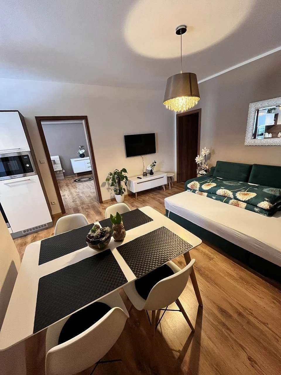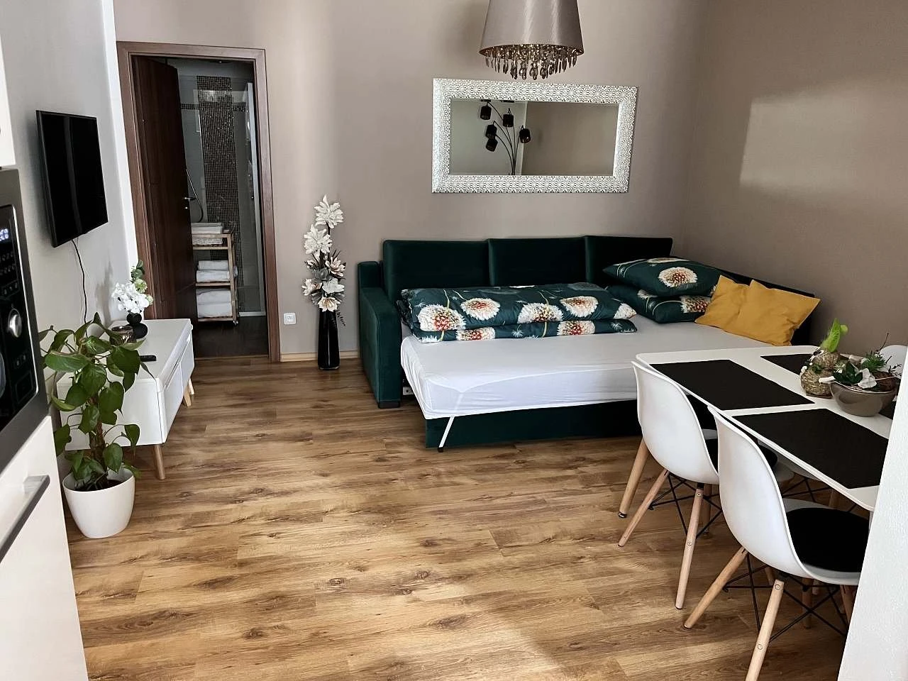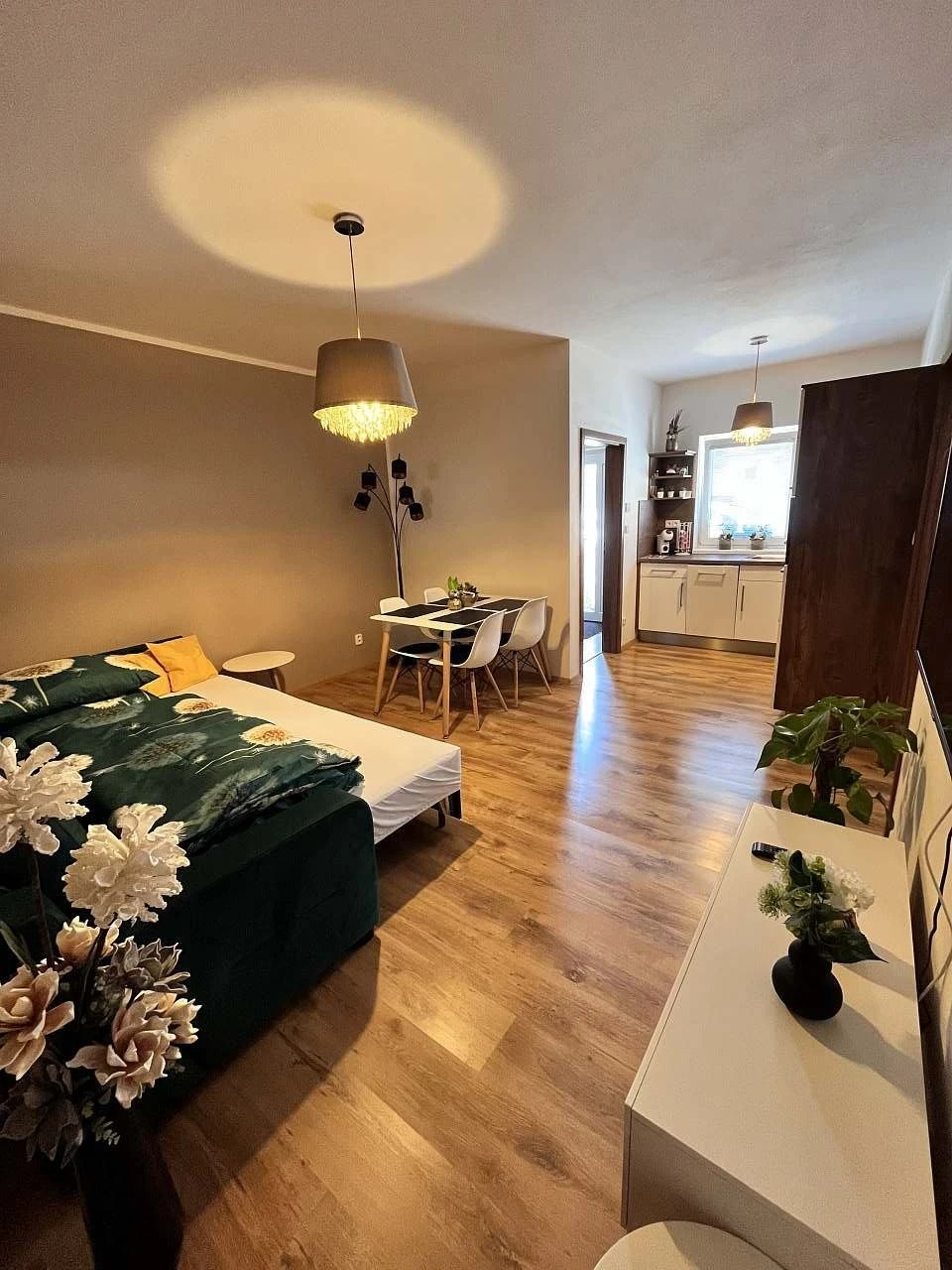 Ke každému apartmánu náleží 1 parkovací místo přímo u objektu. Obchody a restaurace se nachází v docházkové vzdálenosti cca 300 metrů od ubytování.