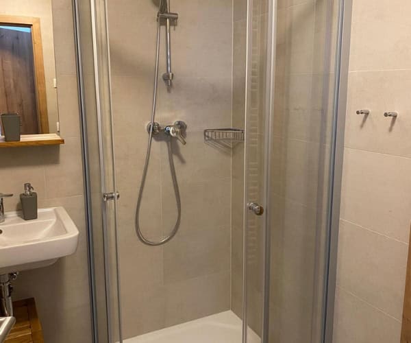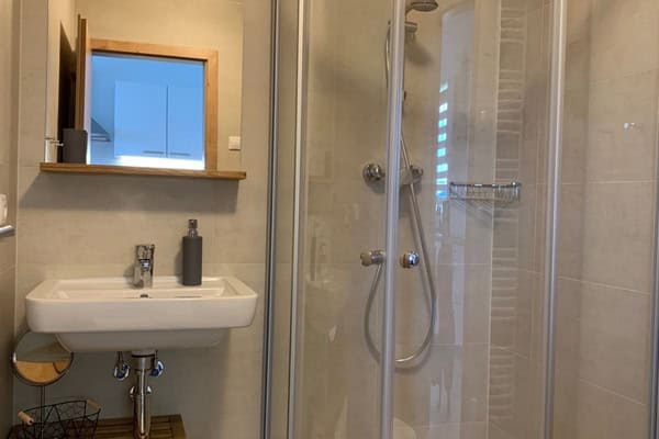 - Koupelna se sprchovým koutem a WC.