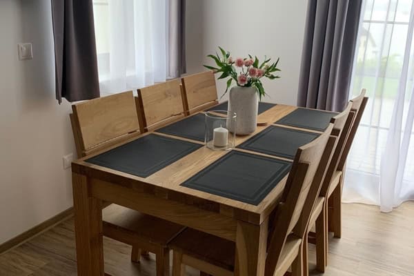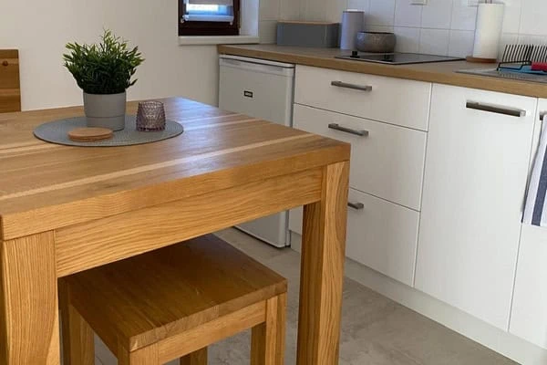 K dispozici je plně vybavená kuchyň, stůl pro 4 osoby a rozkládací pohovka pro 2 dospělé osoby.