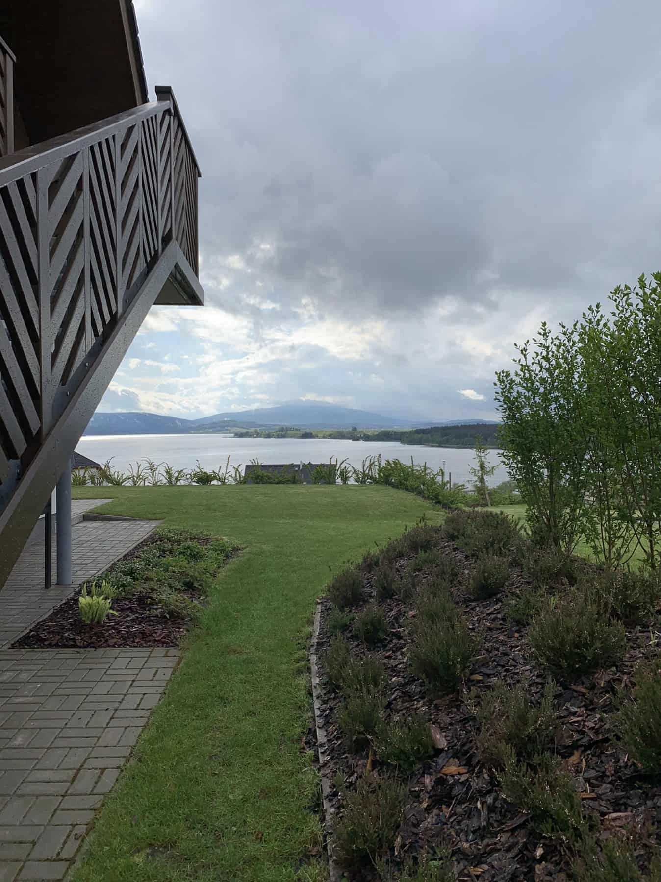 Z přízemí je přímý vstup na terasu s posezením a výhledem na jezero.