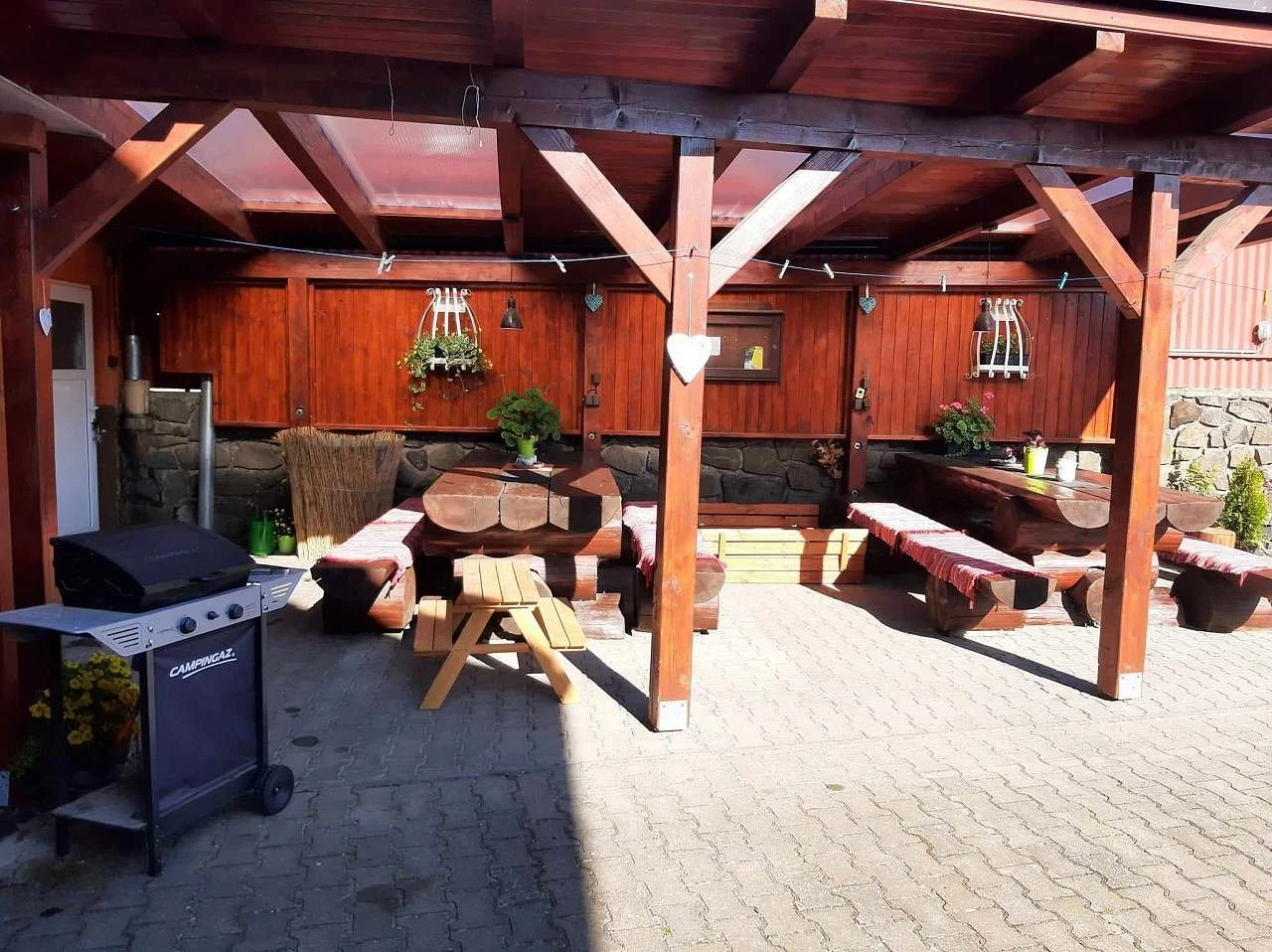 Hosté mohou využívat zahradu s dětským hřištěm (pískoviště, houpačka, skluzavka), terasové posezení, gril a kotlík na vaření guláše. K dispozici je také uzamykatelná místnost pro uložení kol. Významnou součástí nabídky jsou dva koně s možností projížďky během pobytu a také prohlídky či vyjížďky americkým armádním vozidlem Humvee. Parkování je zajištěno na oploceném parkovišti přímo u objektu.