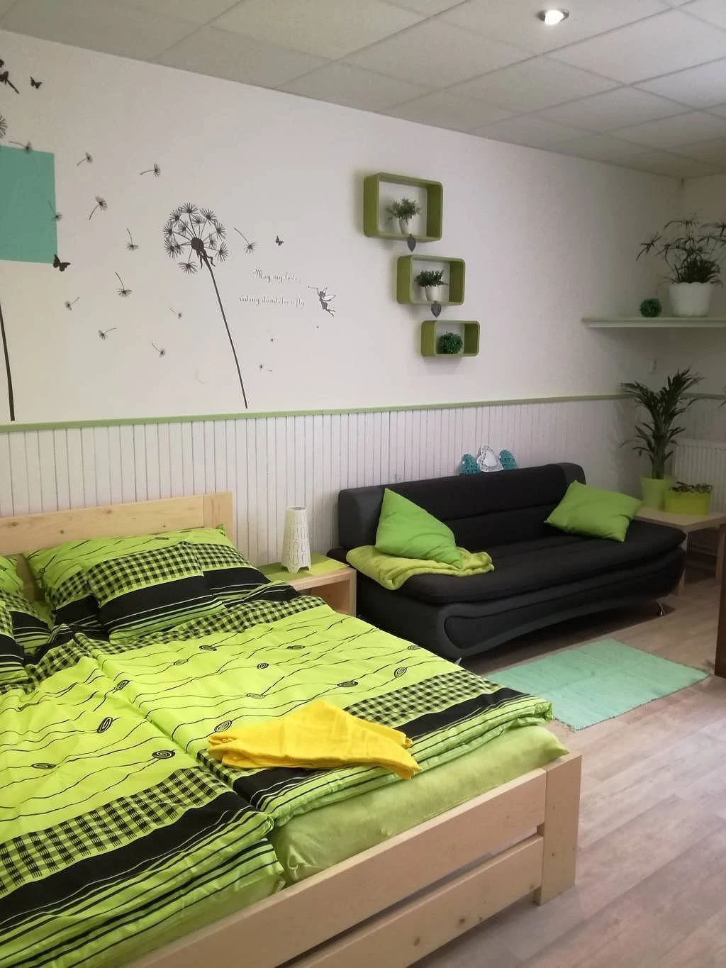 Mátový apartmánApartmán „mátový“ pro 5 osob se skládá ze samostatné ložnice se 3 lůžky, ložnice s dvojlůžkem, kuchyňky (lednice, vařič, varná konvice, toustovač, mikrovlnka), WC se sprchou. Z kuchyně je přímý vstup na uzavřenou zahrádku a děti tak máte neustále pod dohledem. 100 metrů od apartmánů je tenisový kurt. Tenisové rakety Vám rádi zapůjčíme.