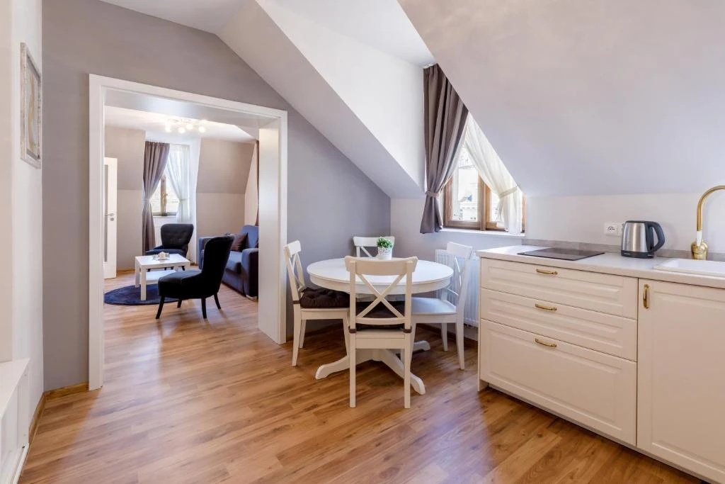 Apartmány mají praktické a kompletní vybavení, vhodné pro krátkodobé i dlouhodobé pobyty, s důrazem na komfort, soukromí a plně vybavenou kuchyňku.