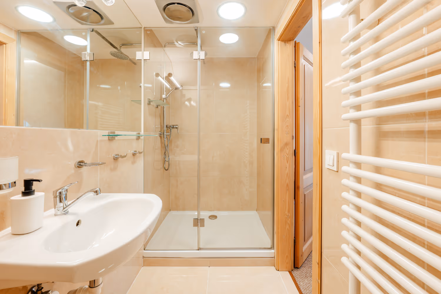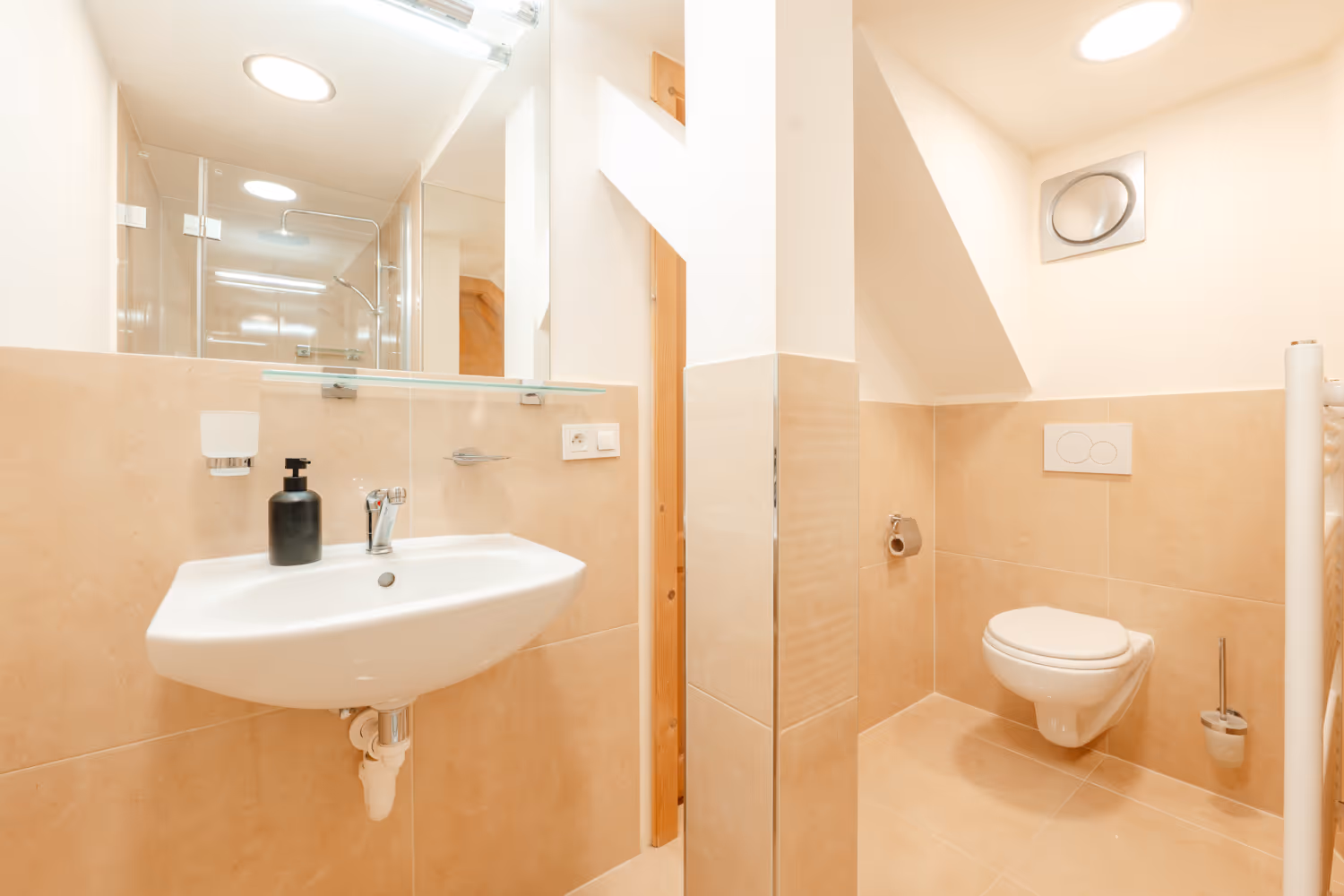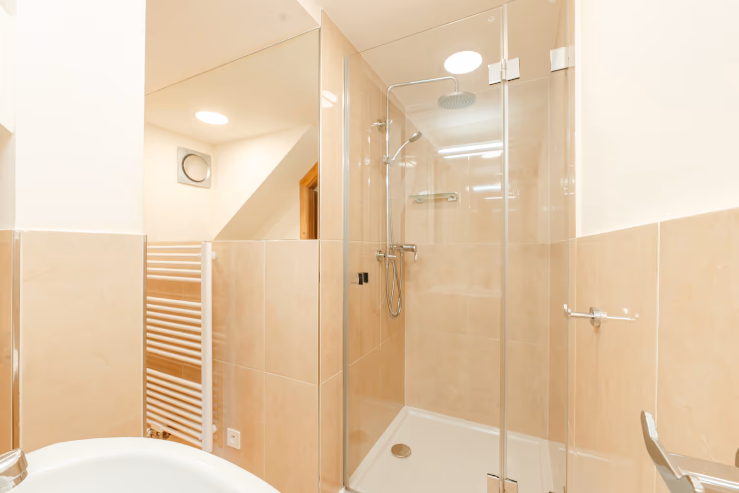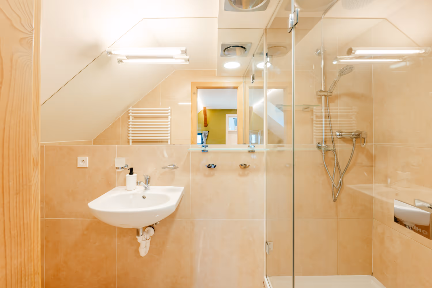- Popis: Menší apartmán s koupelnou a velkým sprchovým koutem.