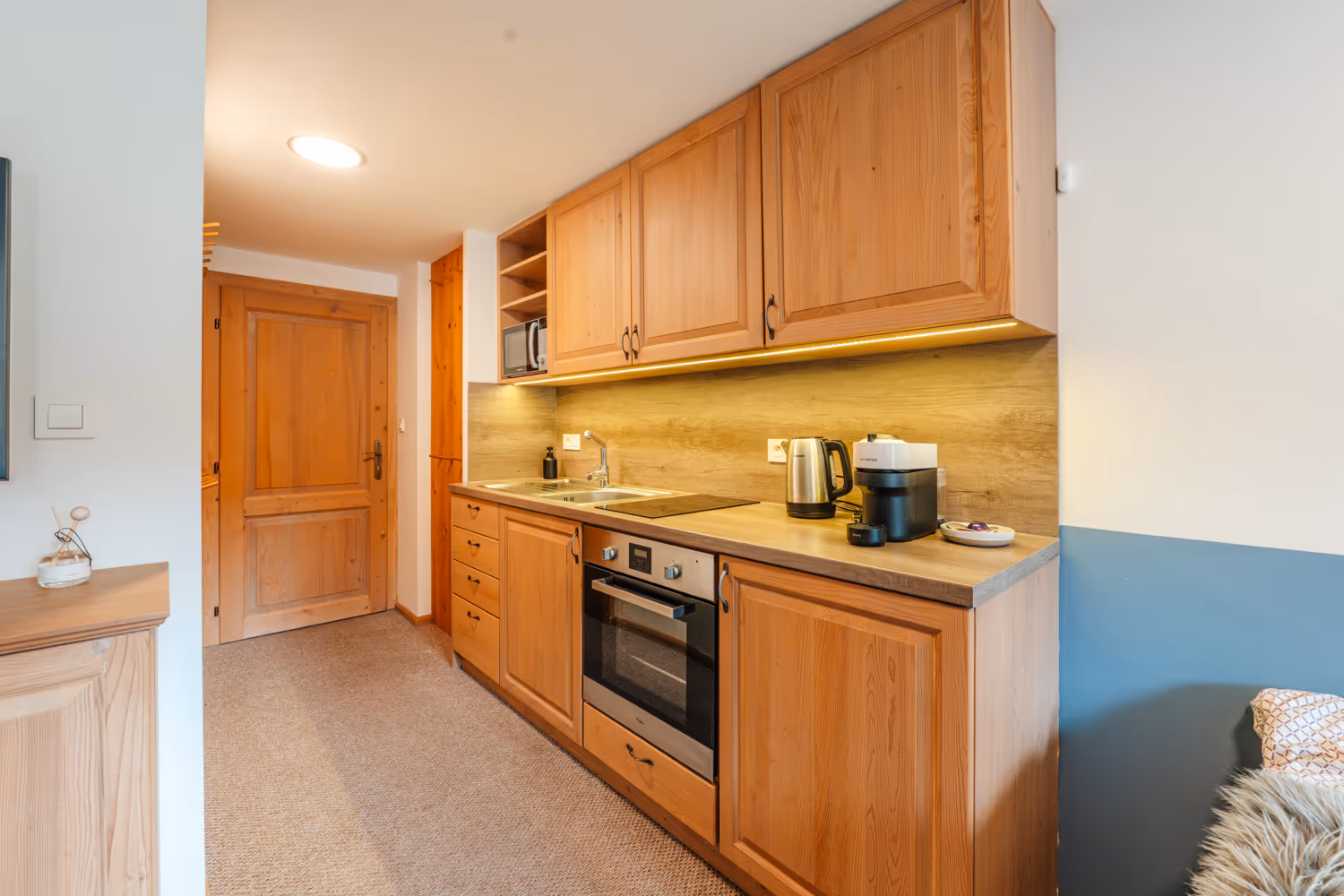 Kompaktní apartmán v horské roubence o velikosti 26 m². Součástí je plně vybavený kuchyňský kout s kávovarem Nespresso a troubou, dále koupelna se sprchovým koutem. V ložnici jsou pružinové zdravotní matrace, 1 plnohodnotná přistýlka a 4K TV (Netflix, YouTube).