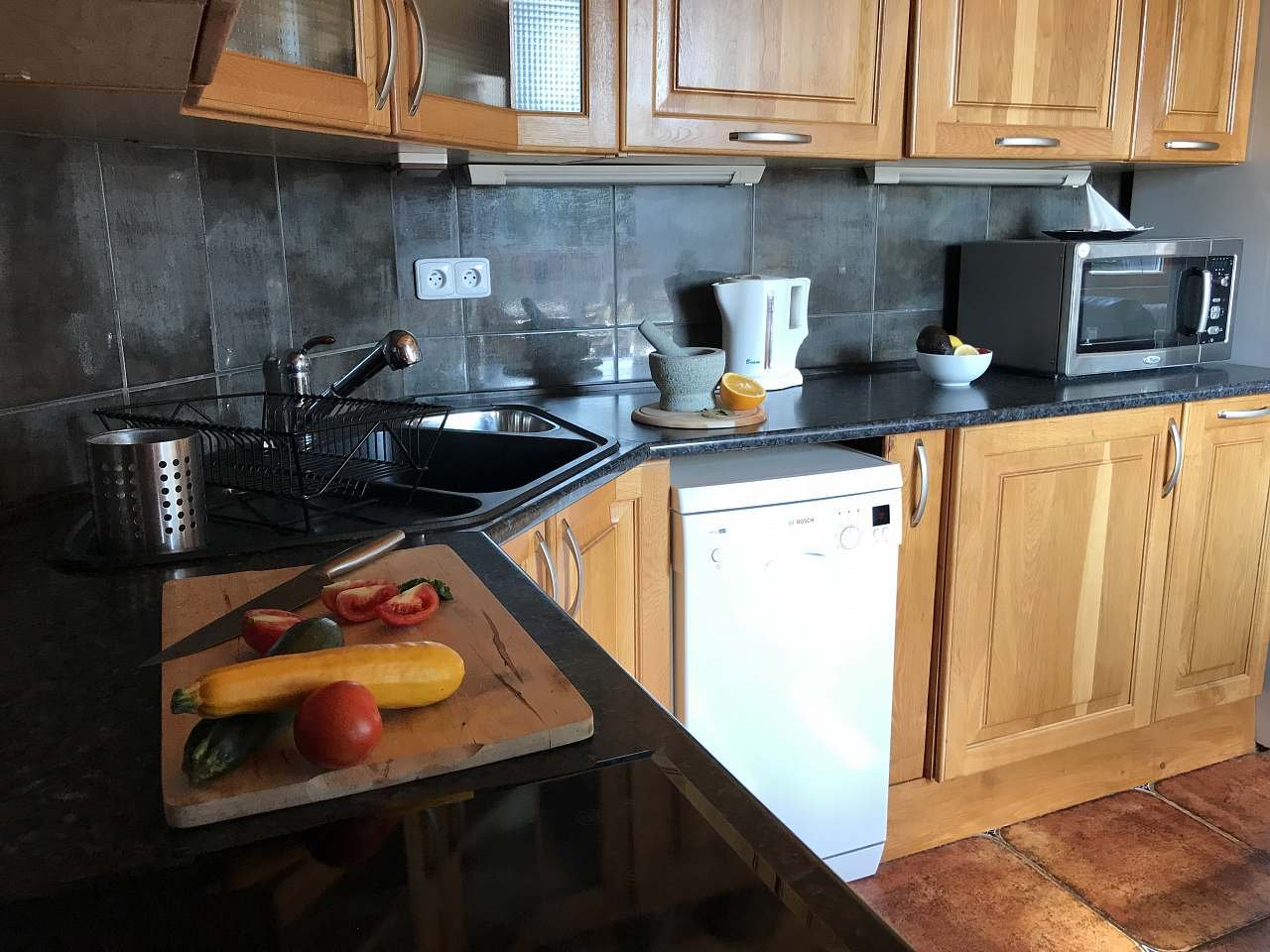 Vnitřní vybavení zahrnuje televizi se satelitním příjmem, rychlovarnou konvici, mikrovlnnou troubu, lednici, myčku nádobí, dále sprchový kout a vanu.