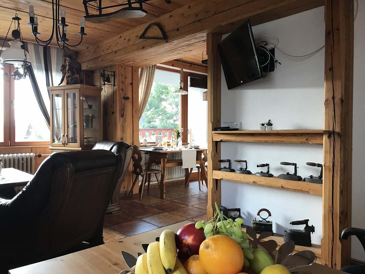 Apartmán se nachází v obci Pěkná v oblasti Národního parku Šumava. Jedná se o nově zrekonstruované a plně vybavené ubytování se třemi ložnicemi a kapacitou 7 lůžek, kterou je možné po dohodě navýšit až na 9 osob.Dispozice zahrnuje obývací pokoj propojený s kuchyní. Součástí obývací části je velká LCD televize a jídelní stůl pro až 7 osob. Kuchyň je plně vybavená – obsahuje myčku nádobí, varnou desku, troubu a lednici s mrazákem. Z kuchyně je přístup na balkon.Apartmán má tři ložnice. Jedna ložnice je vybavena manželskou postelí a prostornou skříní. Další dvě ložnice mají palandy – v obou případech jde o dvě lůžka nad sebou, přičemž v jednom pokoji je navíc jednolůžko.Součástí jsou dvě koupelny – jedna s rohovou vanou, druhá se sprchovým koutem. K dispozici jsou také 2 toalety.K apartmánu patří venkovní prostor se zahradním krbem a posezením, který je možné využít ke grilování.