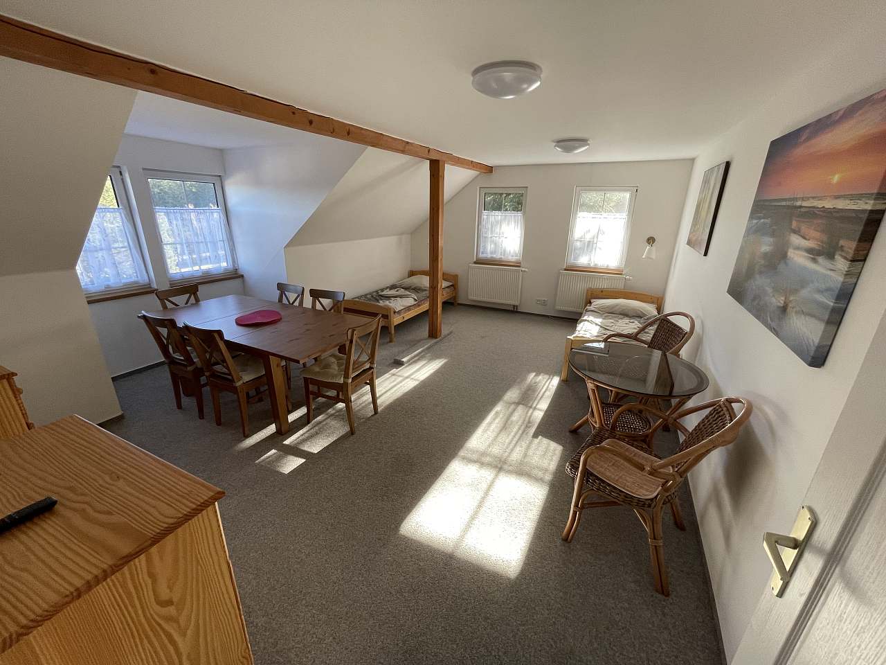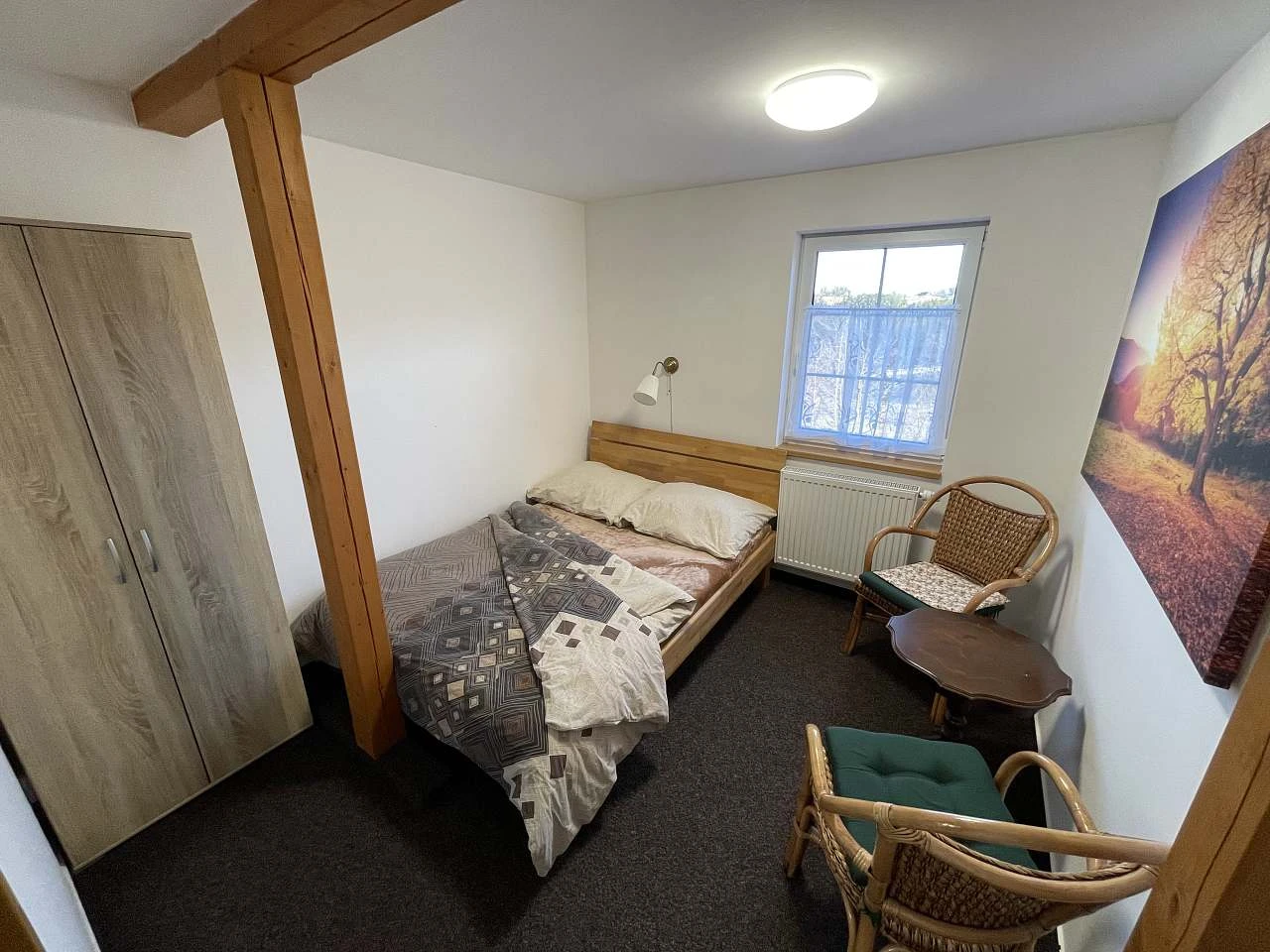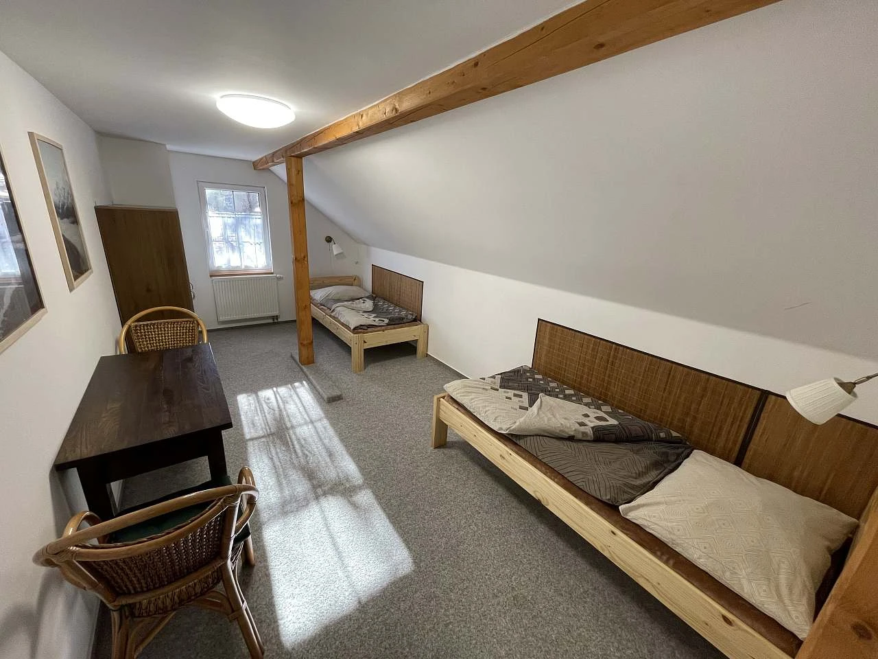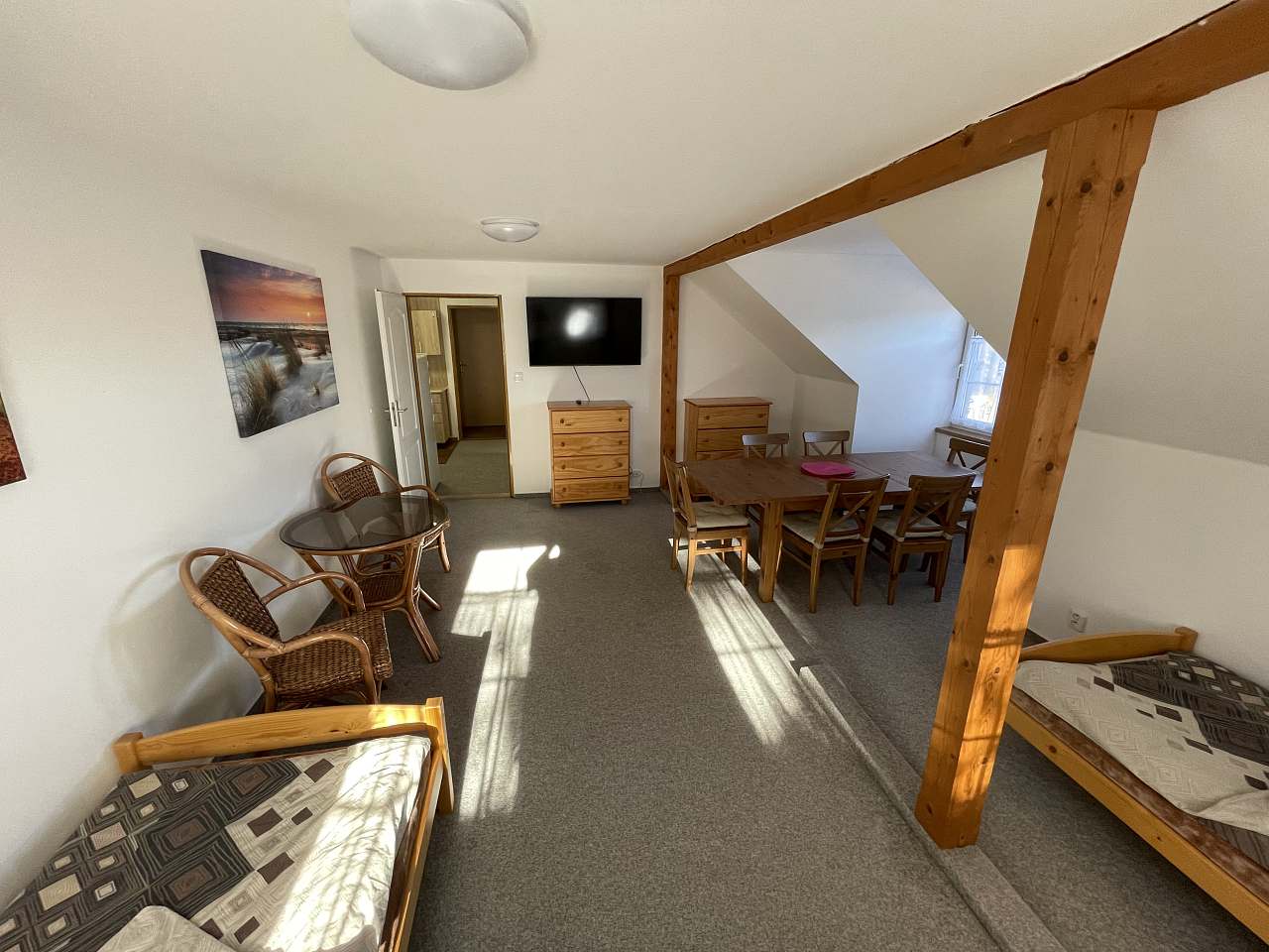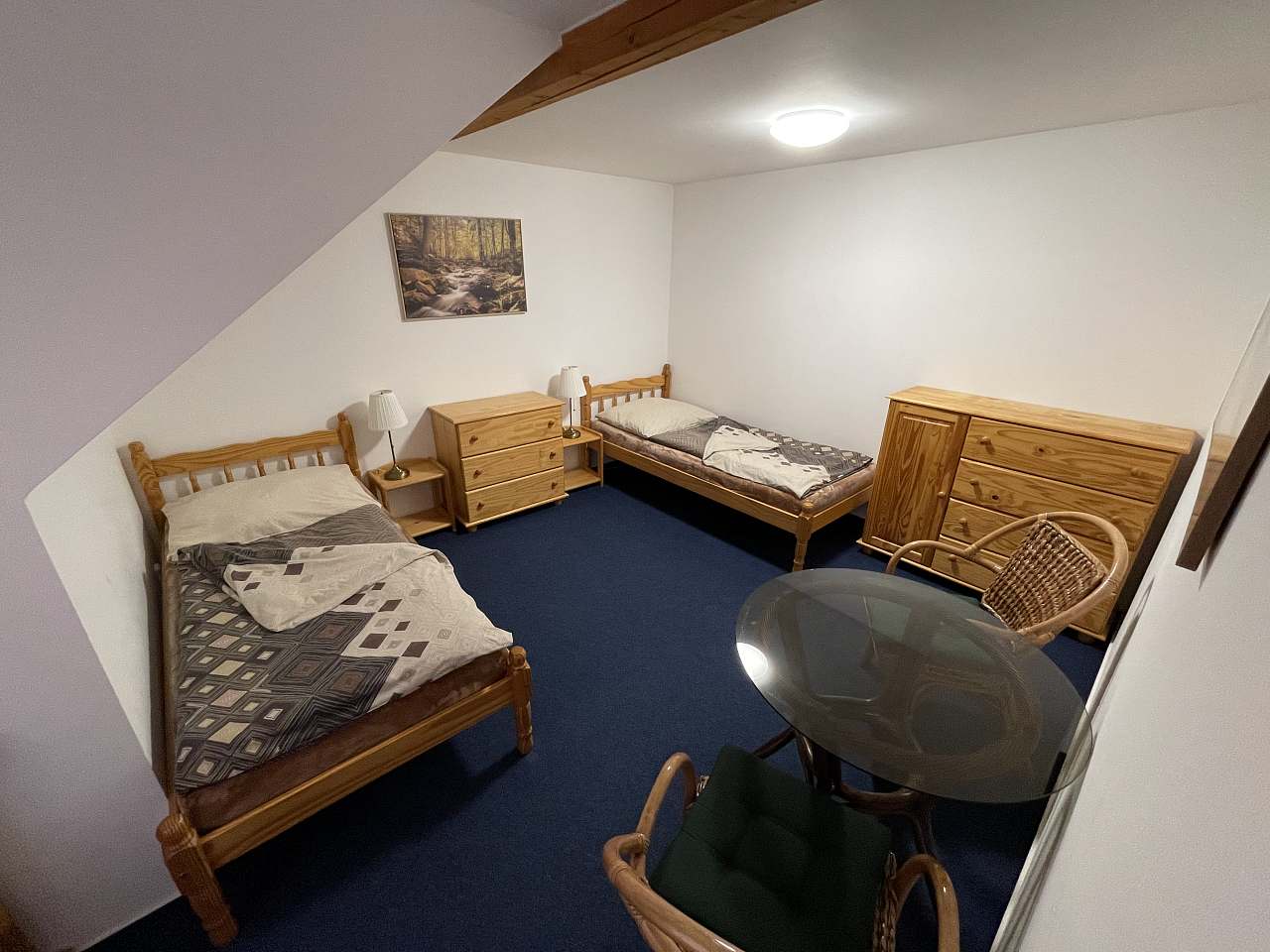 - Jedna obytná ložnice s jídelním stolem pro 6 osob a dvěma samostatnými lůžky.