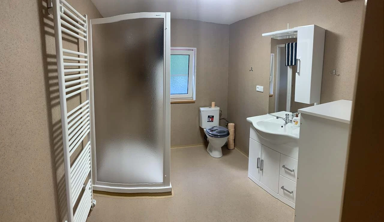- Dvě ložnice: jedna s manželskou postelí (140 cm) a druhá se dvěma samostatnými lůžky, obě s vlastním posezením.