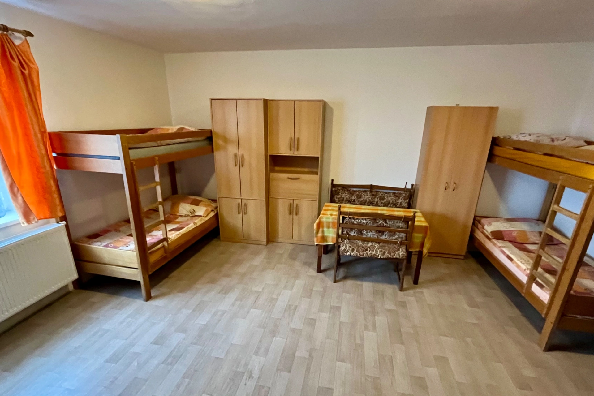 Šestilůžkový pokoj pro 6 osob s možností 2 přistýlek. Pokoj má jednu ložnici vybavenou třemi patrovými postelemi. K dispozici je společná koupelna a společná toaleta.Vybavení:Internetové připojení WiFiSpolečná koupelnaSpolečná toaletaVhodné pro skupiny a kolektivní ubytování.