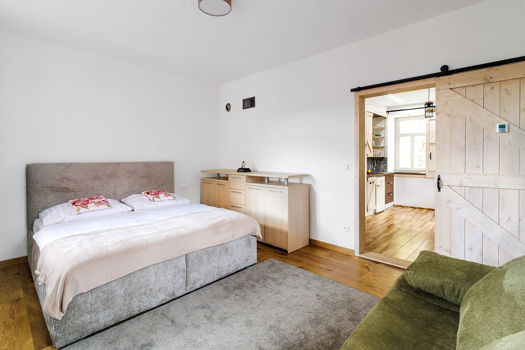 Apartmán v přízemí je určen pro ubytování dvou hostů. Check-in probíhá bezkontaktně, hosté obdrží kód k otevření dveří. Apartmán je prakticky řešený a vhodný pro krátkodobé i delší pobyty.