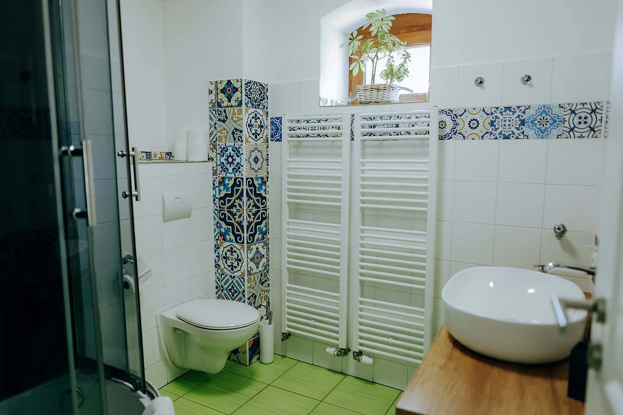 - Koupelny: Celkem 3 koupelny, což zajišťuje pohodlí pro větší skupiny hostů.