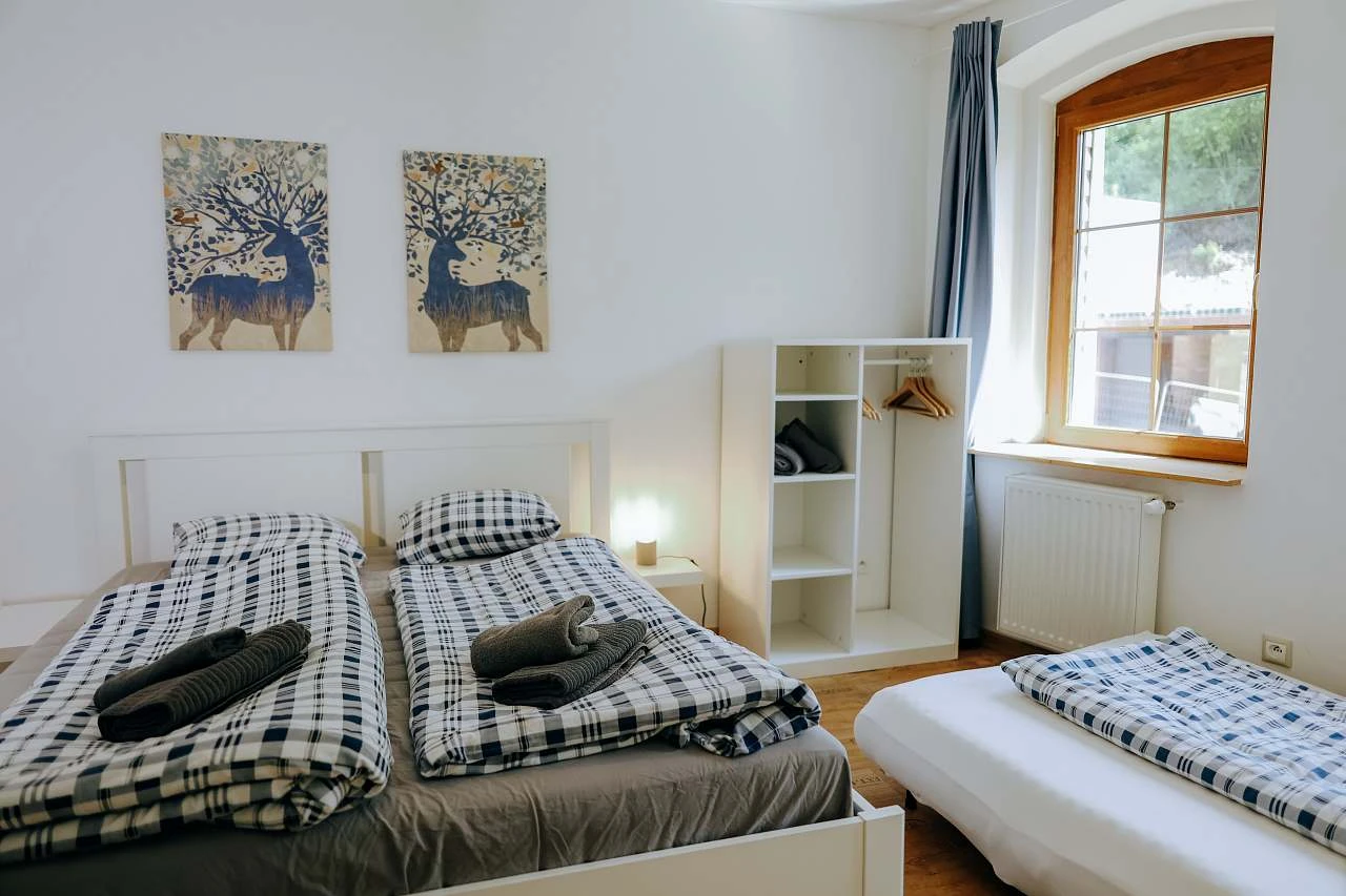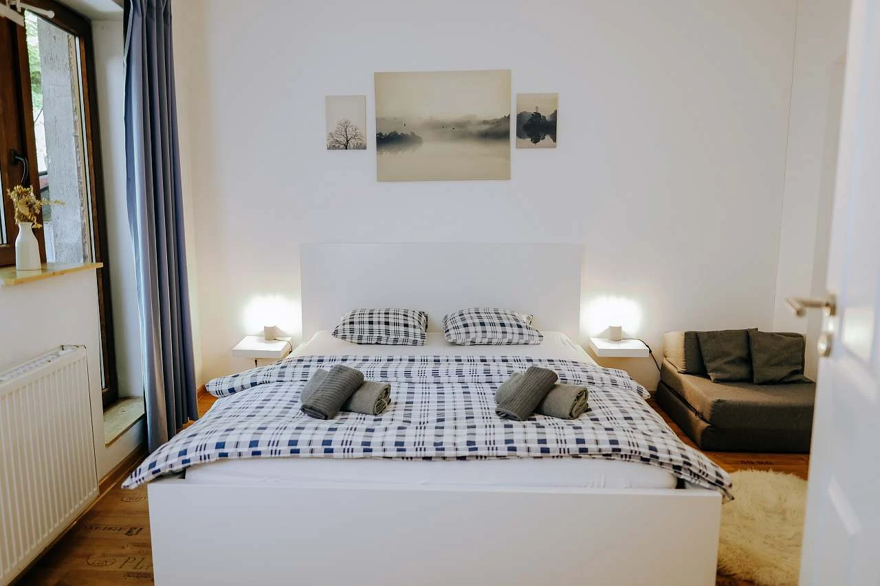 - Ložnice: K dispozici jsou 4 pokoje, každý s manželskou postelí a možností přistýlky.